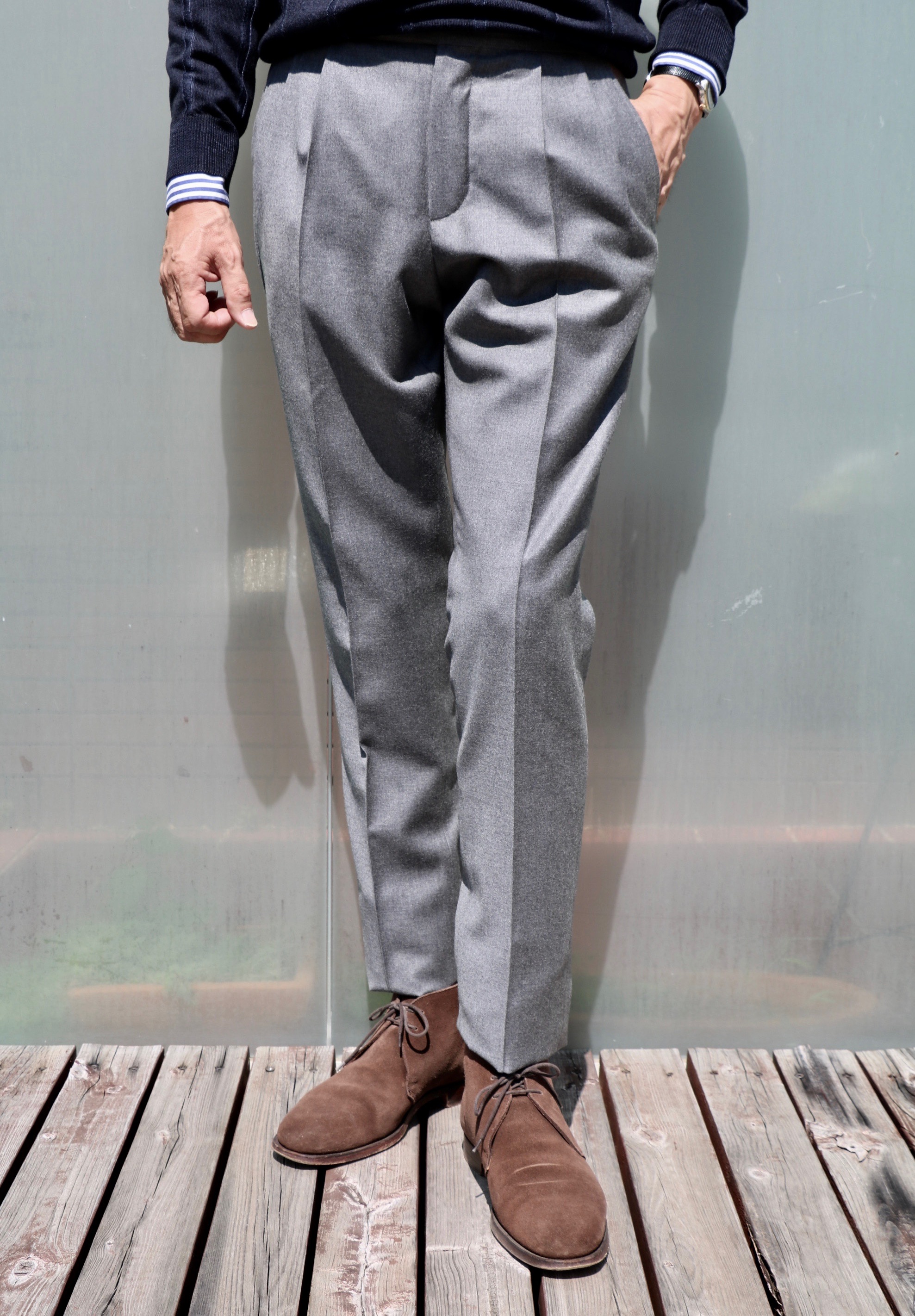 MODEL:「HERRICK」サキソニーグレイ無地パンツ