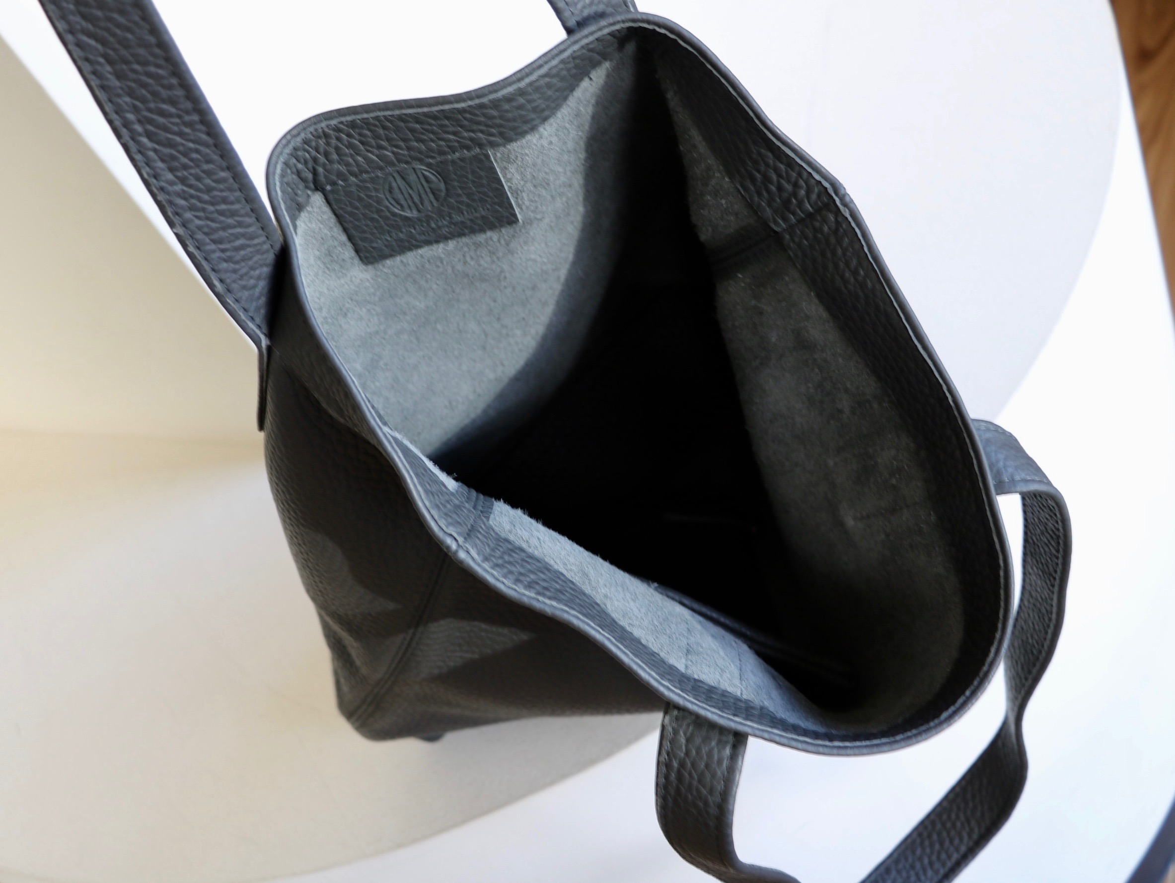 中はポケットのない一層式。まさにトートバッグです。トートとは「運ぶ」とか「背負う」の意味。L.L.Beanというアウトドアメーカーから、氷を運ぶためのバッグとして開発・発売されました。冷蔵庫がなかった当時、トートバッグは食品保冷用の氷塊を運ぶために作られたバッグなんですね。