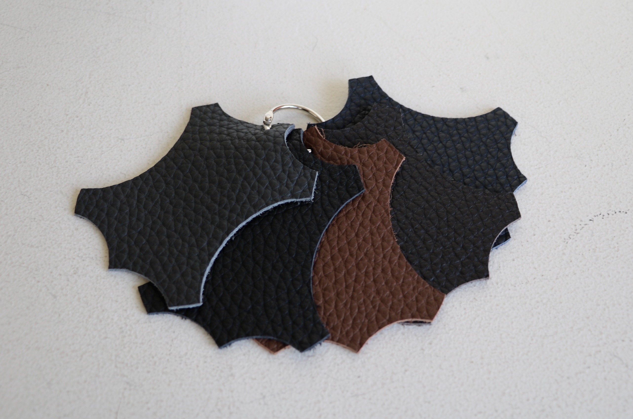 もし在庫がなくなってしまった場合のためにご用意しました。カラーサンプルです。今回の展開色に加え、タンブラウンとダークブラウンもご用意できます。ただ2点以上数がいるのと、納期が二ヶ月ほどかかることをご了承ください。
