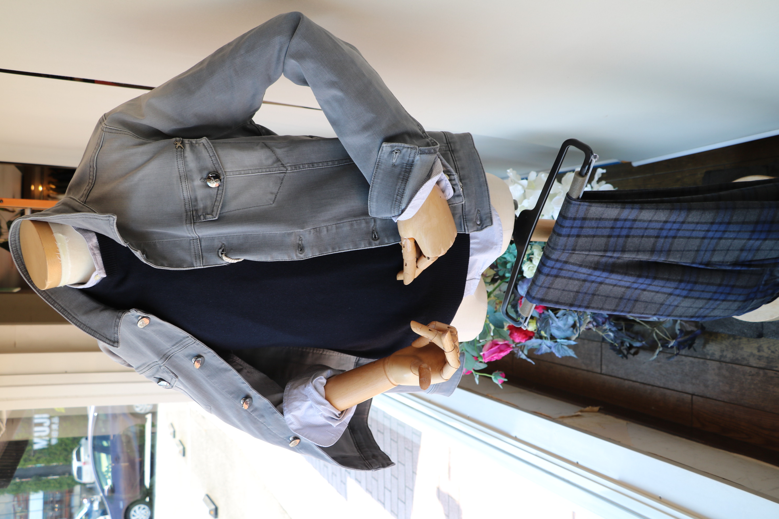 正面ウィンドウにも秋物のディスプレイです。参考までに、デニムジャケットはTRAMAROSSA、ニットベストはSettefili Cashmere、シャツはunrole、パンツはINCOTEXです。