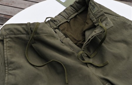 「12S123」製品染めドローコード付きシャーリングパンツです。
