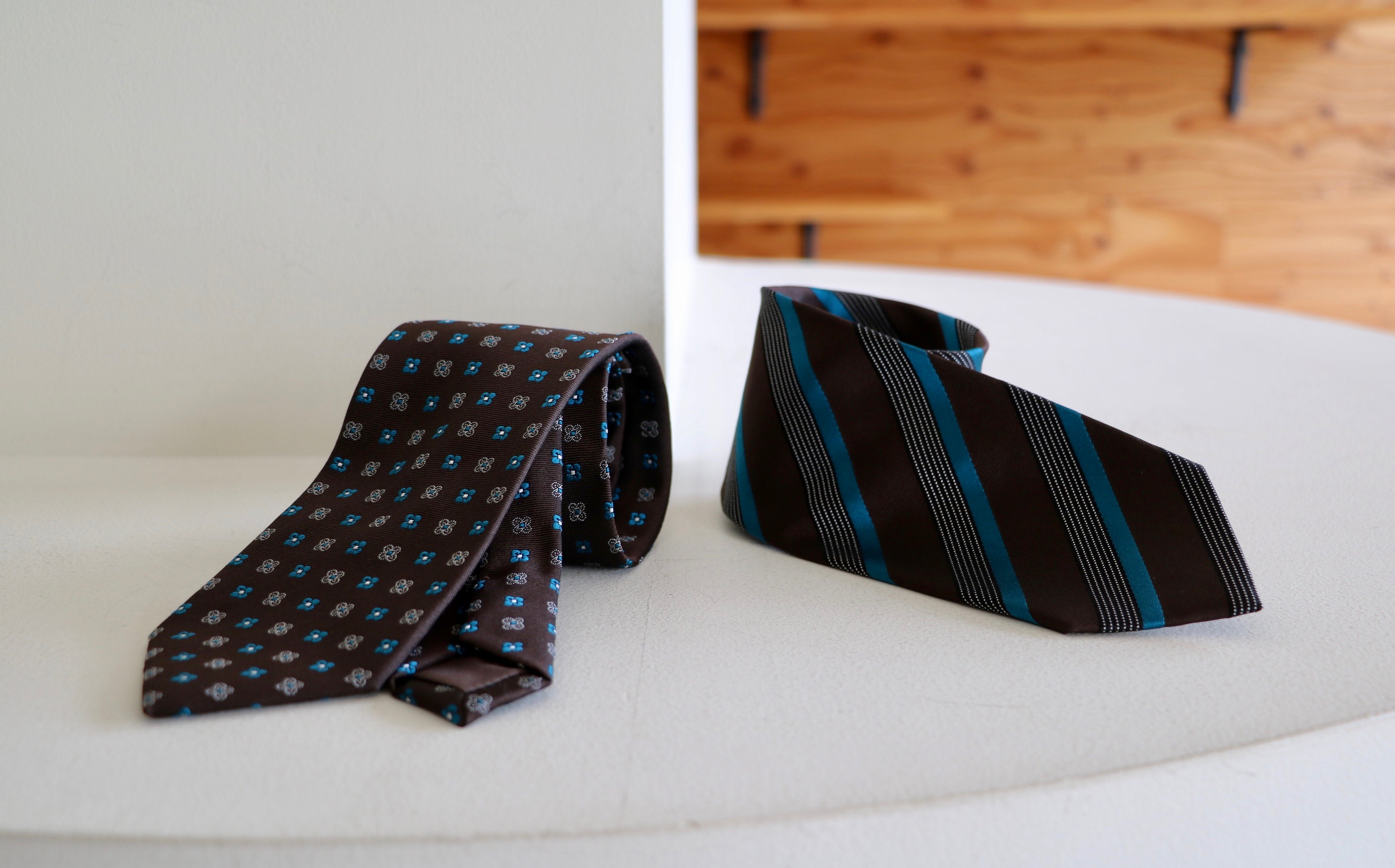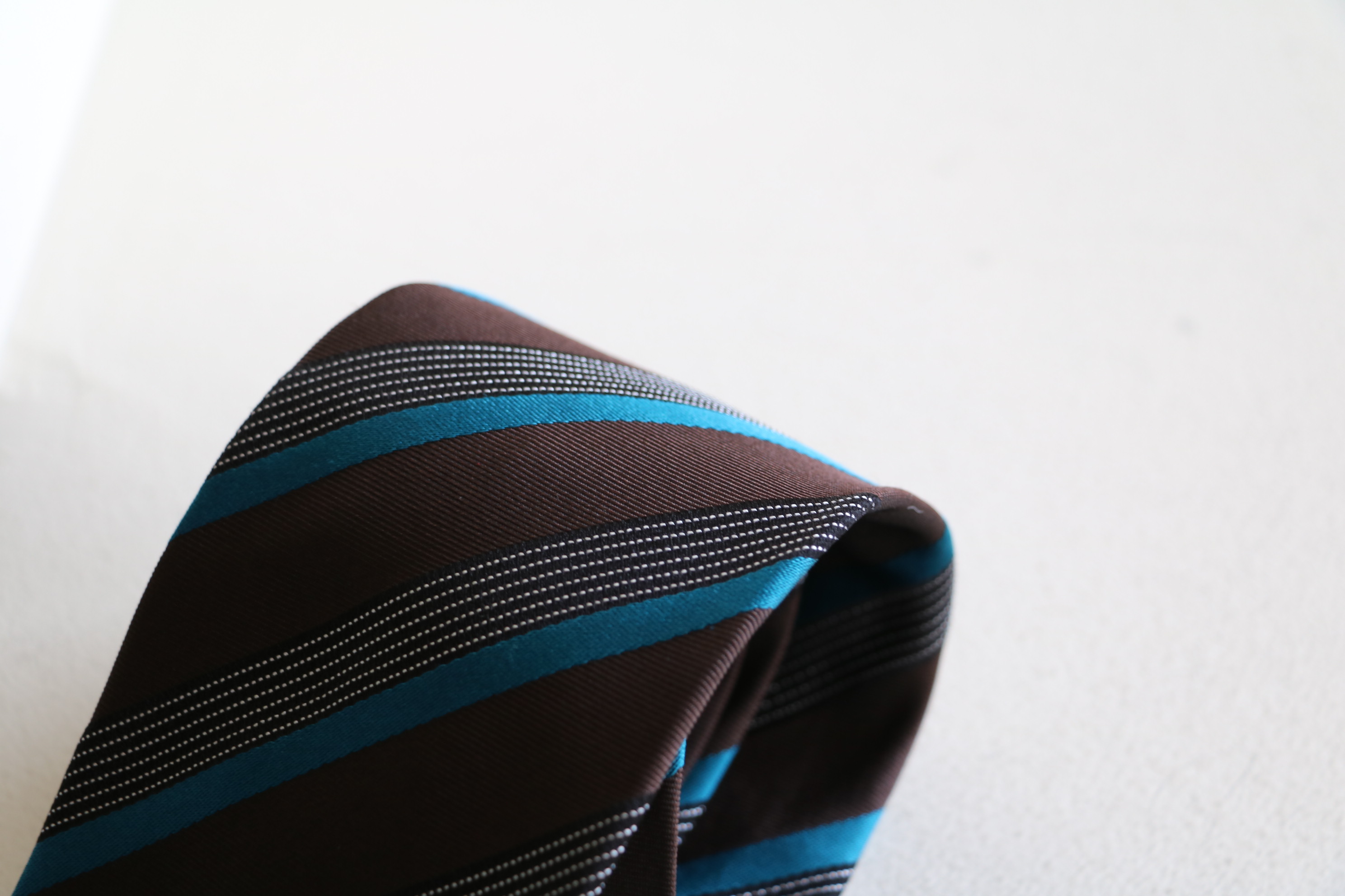 MODEL:ブラウン×ブルー小紋&ストライプ柄シルクタイ