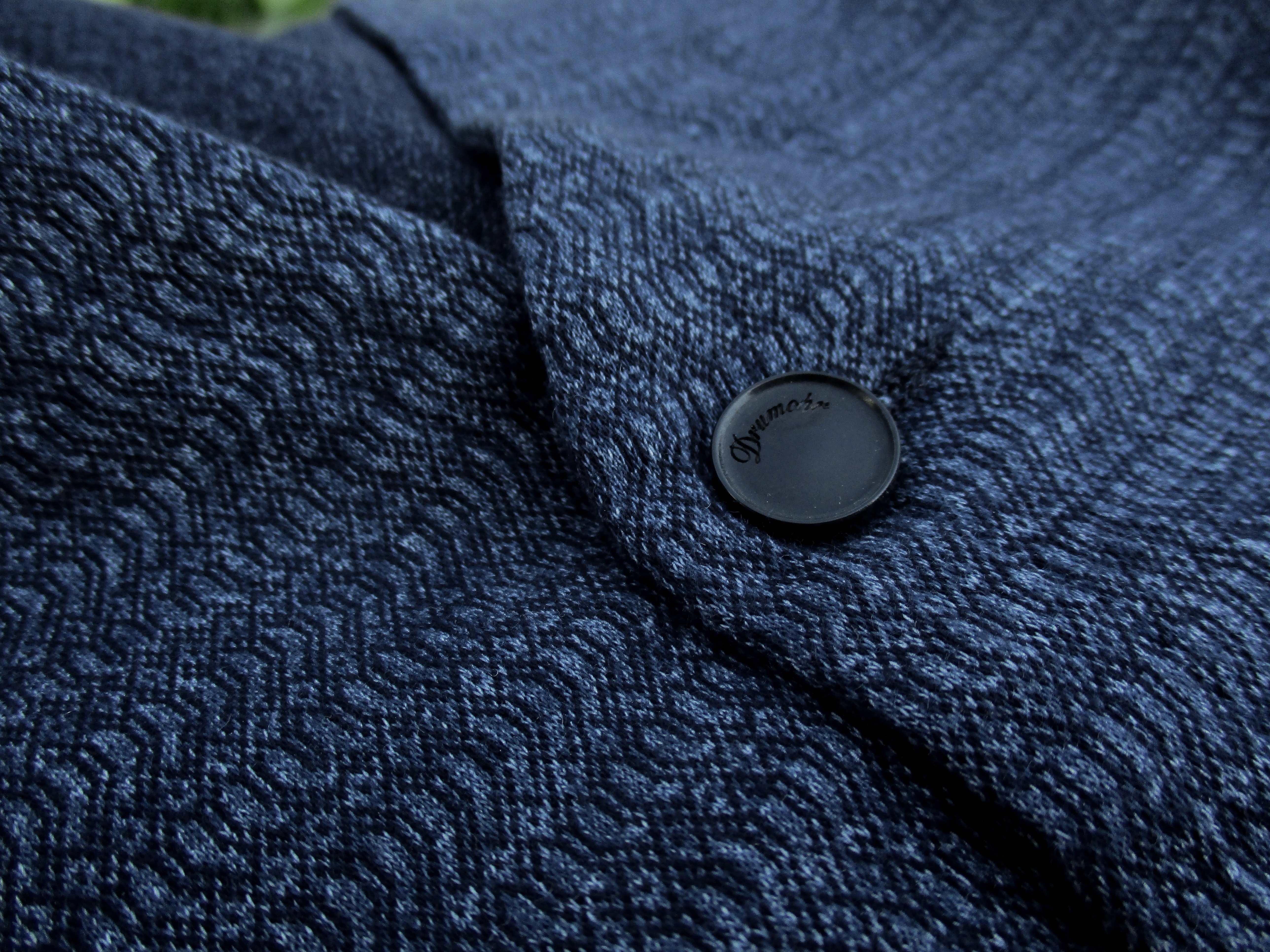衿元とポケット内側に配された杢グレイがアクセント。更に、目を凝らして見てください。同色のドット柄が表情を豊かにしています。