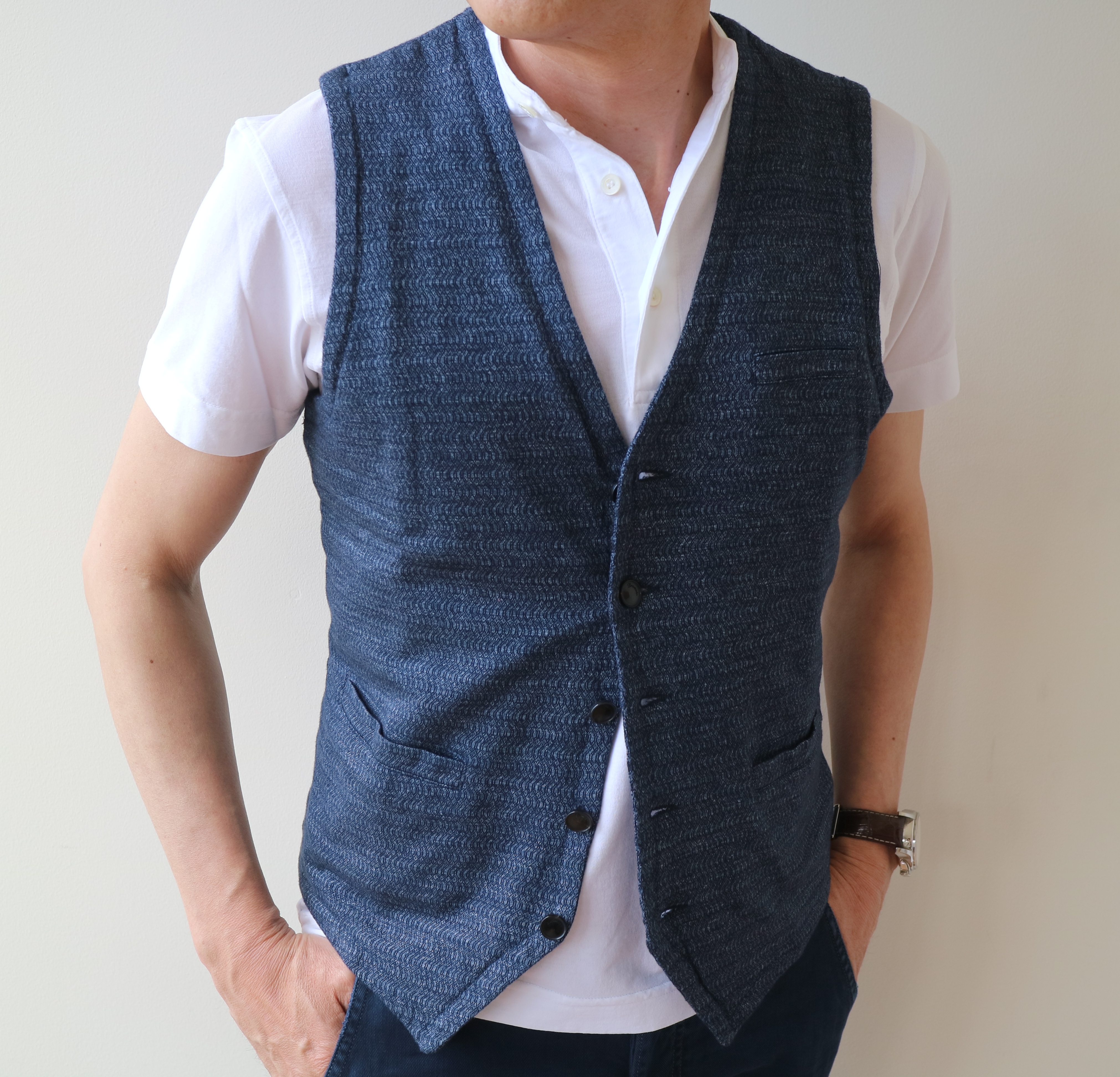 ご紹介したいのは、【Drumohr/ドルモア】のジレ。インディゴブルーで統一して、コーディネートしてみました。