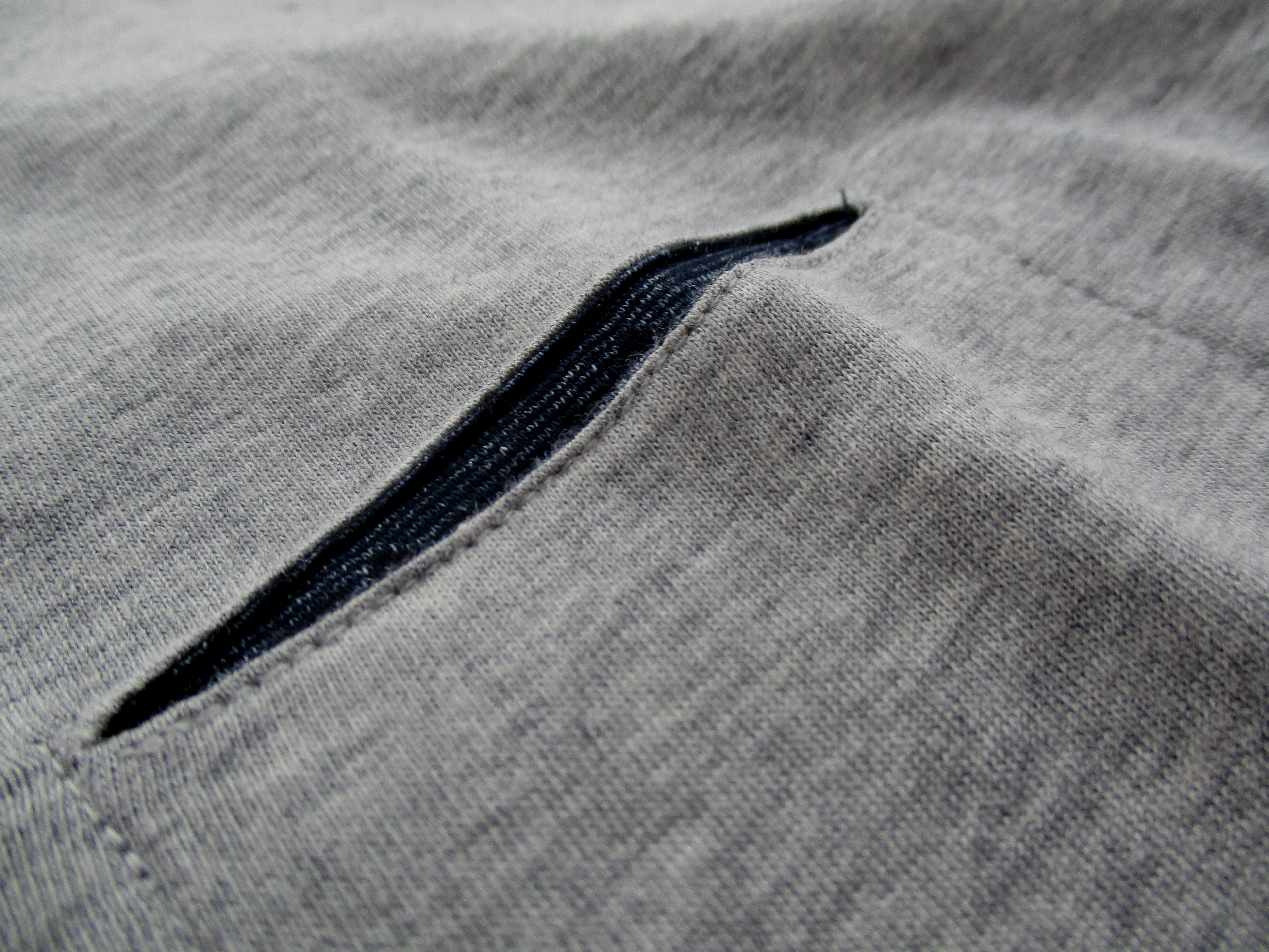 またもや日付が入ってしまい、ちゃんと仕事をしているアリバイ?に...と、どうでもよい話です。袖と裾は、他のニットに見られるリブ編みではなく、カットソーのようにタタキ仕上げに。スウェット感覚で気軽な雰囲気を楽しんでいただけます。