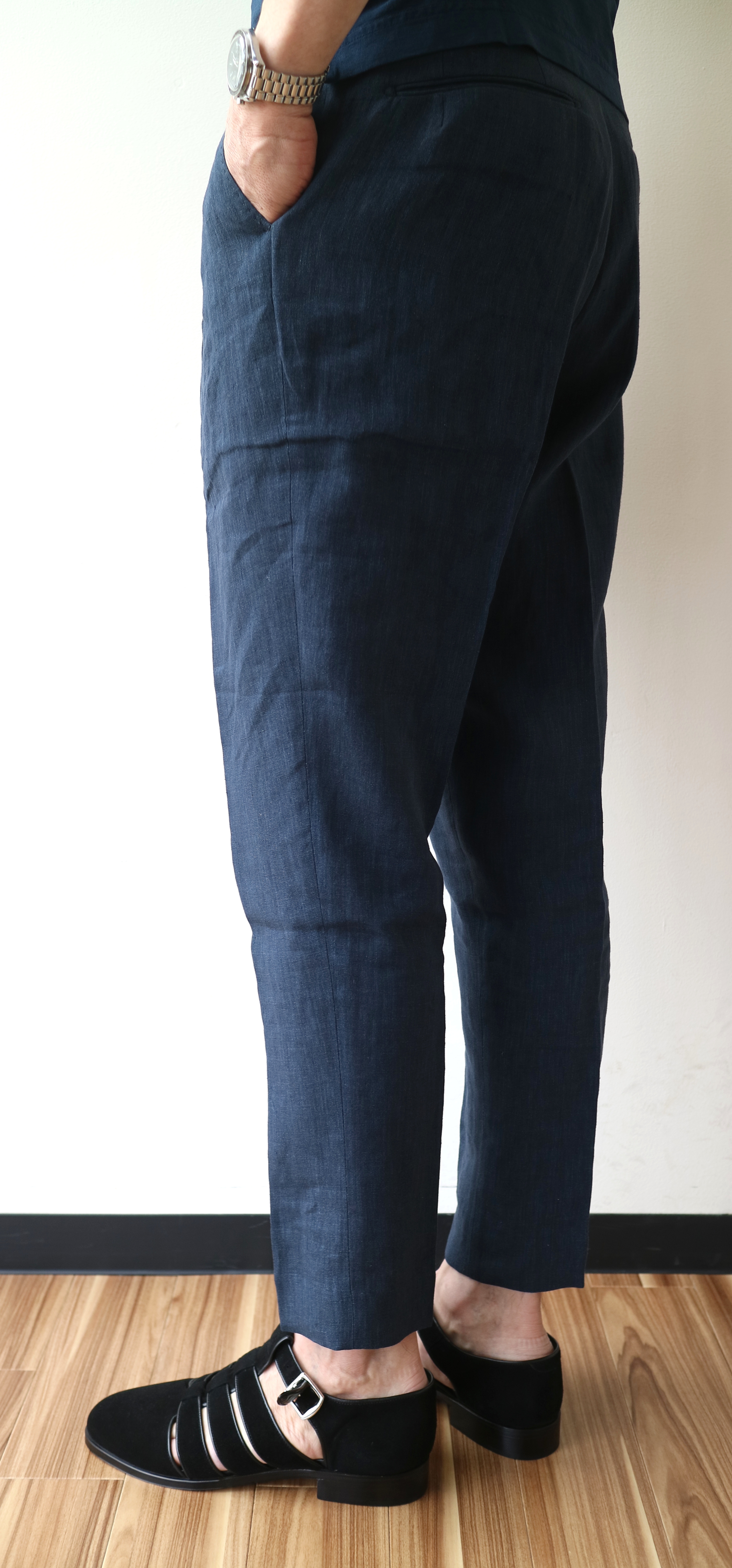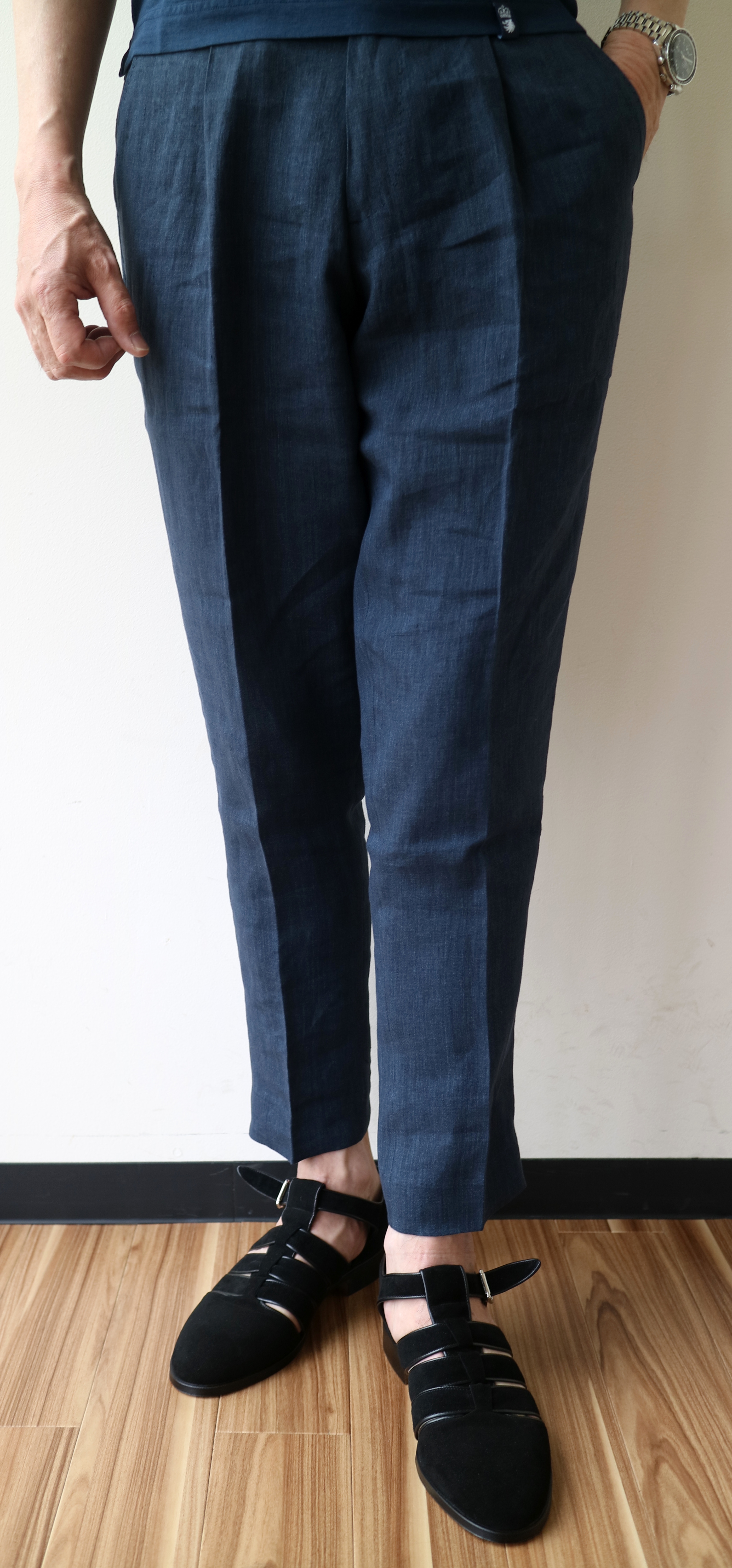 4月27日、Finamore(フィナモレ)のご紹介の際、合わせましたが、あまりの軽さと涼しさの為、これは夏まで売り場に残しておきたい...そう思うほどに軽快なパンツです。