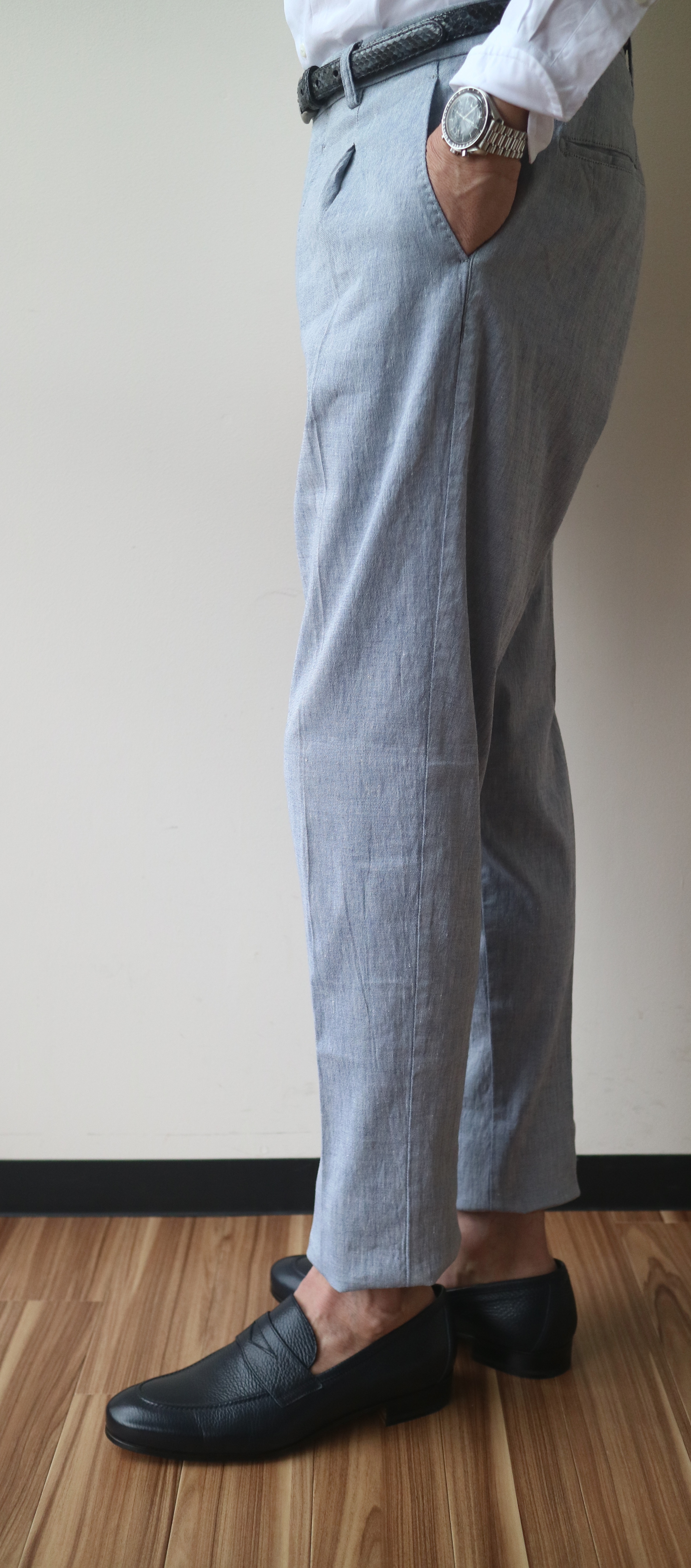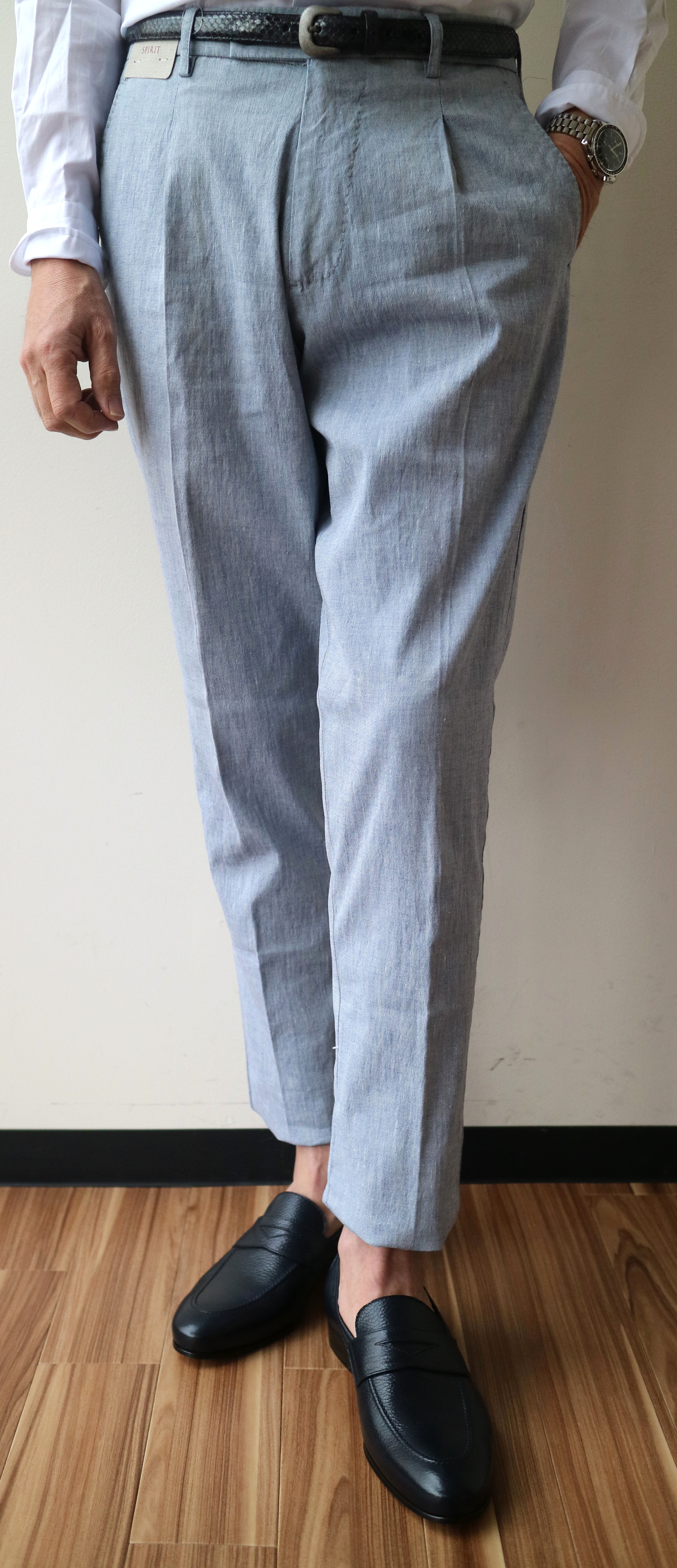 MODEL:「SAKE 」 ライトブルーストレッチコットン・リネンパンツ