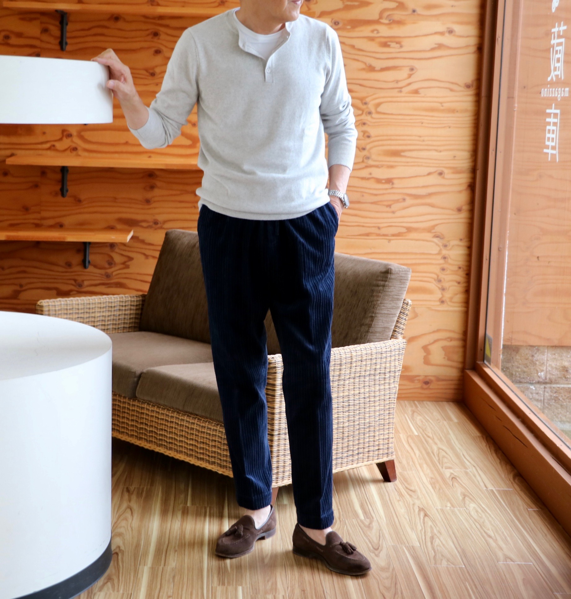 同じくSILENCE(サイレンス)のレザーの際には穿いていたパンツです。ところで、インに来ているボーダーニット。「早く買わないと買っちゃうよ」なんて私見を述べてしまいましたが、その後、通販サイトではソールドアウト。ブログを書き終えたその日のうちに注文が入ってしまい、結局は私の元には来ずじまいでした。残念です。