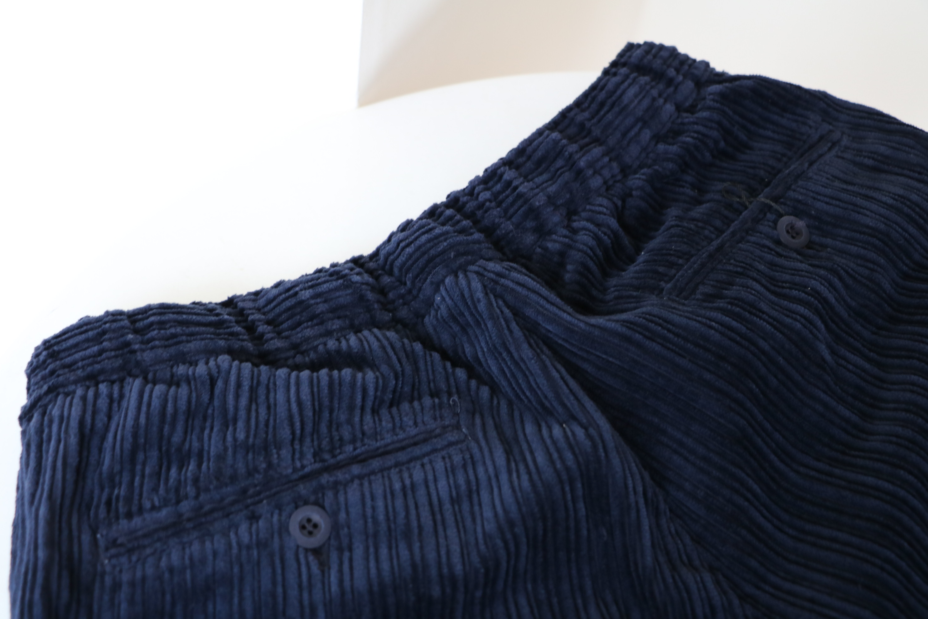 色違いのプルシャンブルーは、ネイビーより艶やかな色合い。日本名では紺青です。光の角度によって表情が変わるのもコーデュロイの趣です。