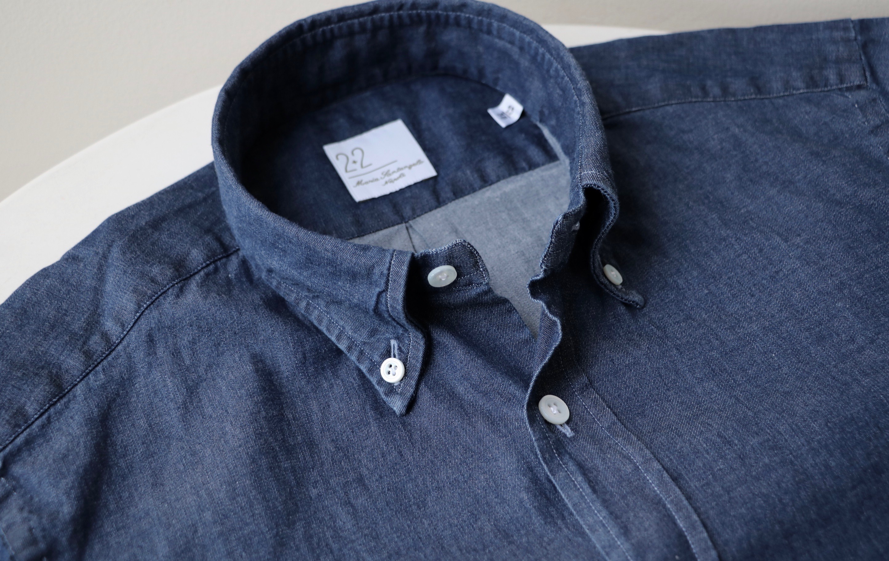 同じモデルでセレクトしたのが、ストレッチコットンのライトウェイトなデニムシャツ。青みを抑えたインディゴブルーが上品です。時にはタイを結びたくなる、そんなドレスダウン、カジュアルアップ用のシャツとして揃えておきたいものです。