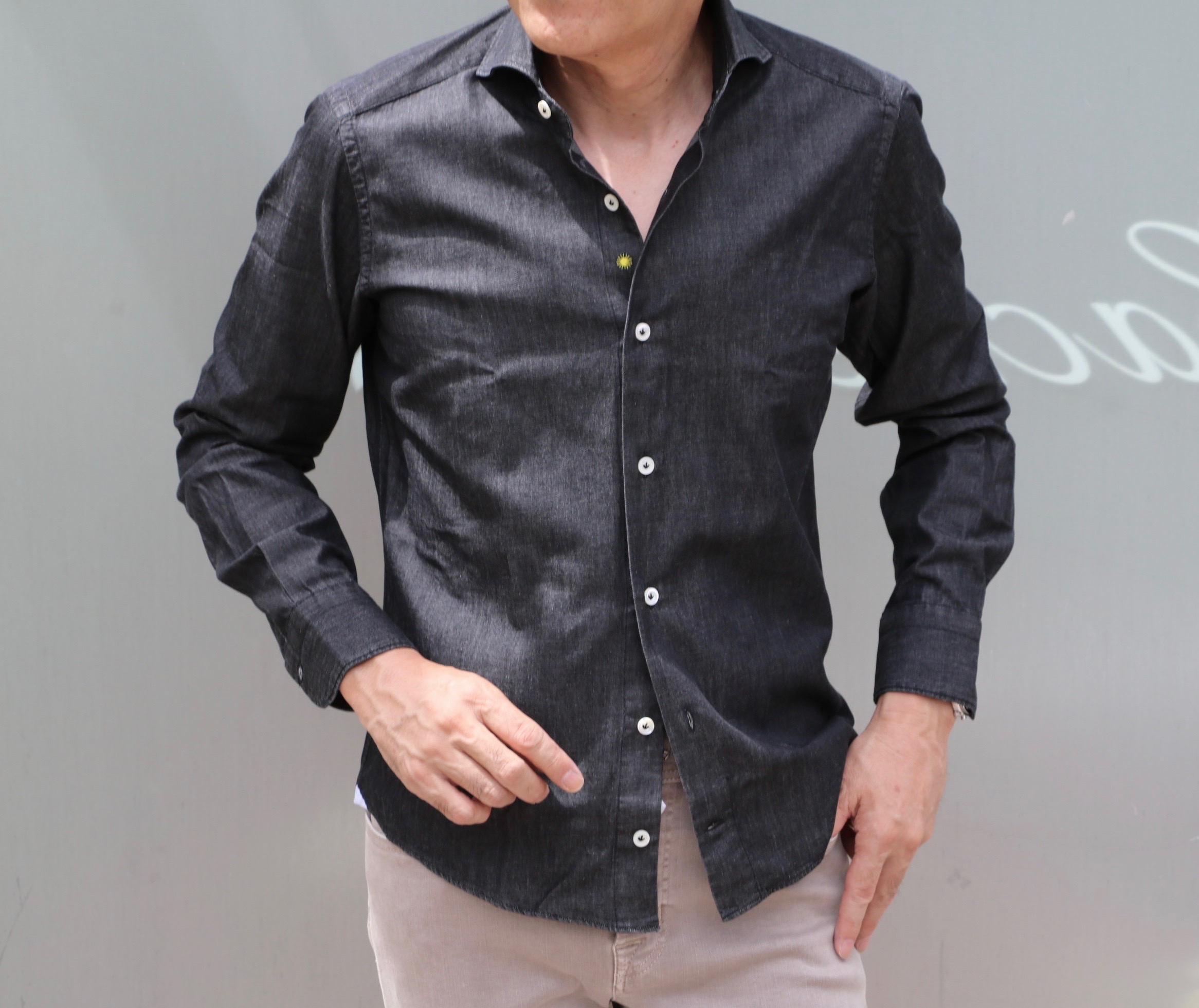 MODEL:「VINCI FIT」ブラックデニムシャツ