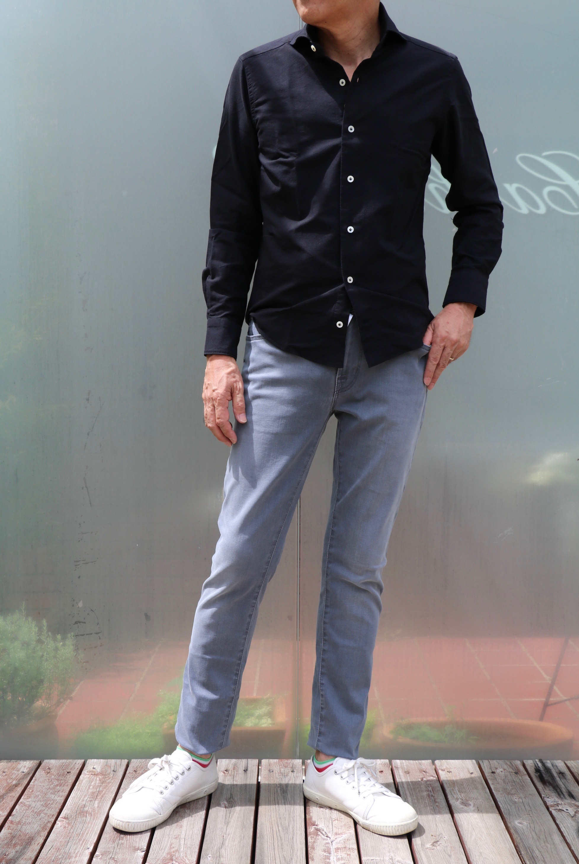 インディゴブルーを待たずにご紹介です。人気のブラックデニム。薄手のコーマデニムならオールシーズン着用可です。