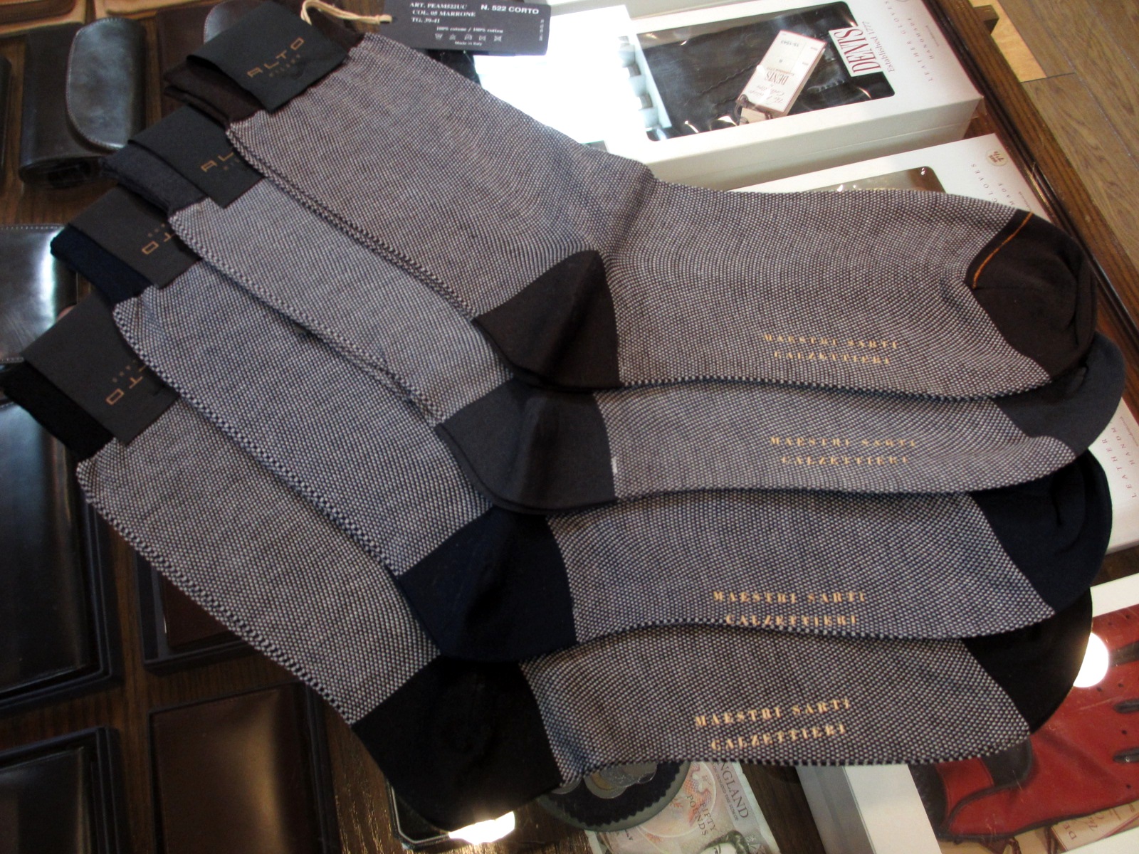 本日のご案内は、やはり足元。靴とパンツを繋ぐものと言えば、靴下。1923年創業の北イタリア・ブレーシャのソックスブランド【ALTO/アルト】からドレス用ソックスをお届けします。