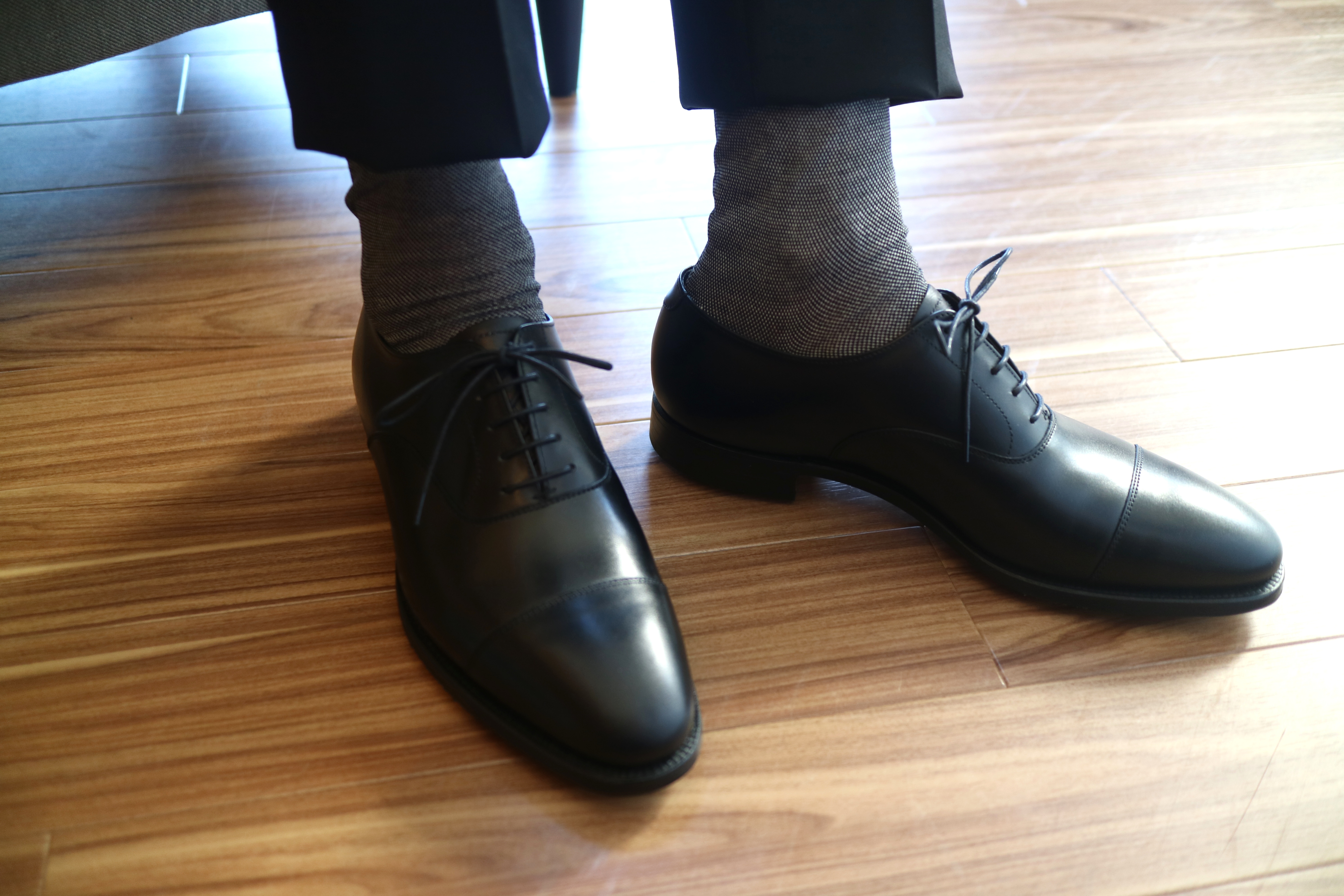 合わせたパンツはPT01、靴はCROCKETT&JONESです。