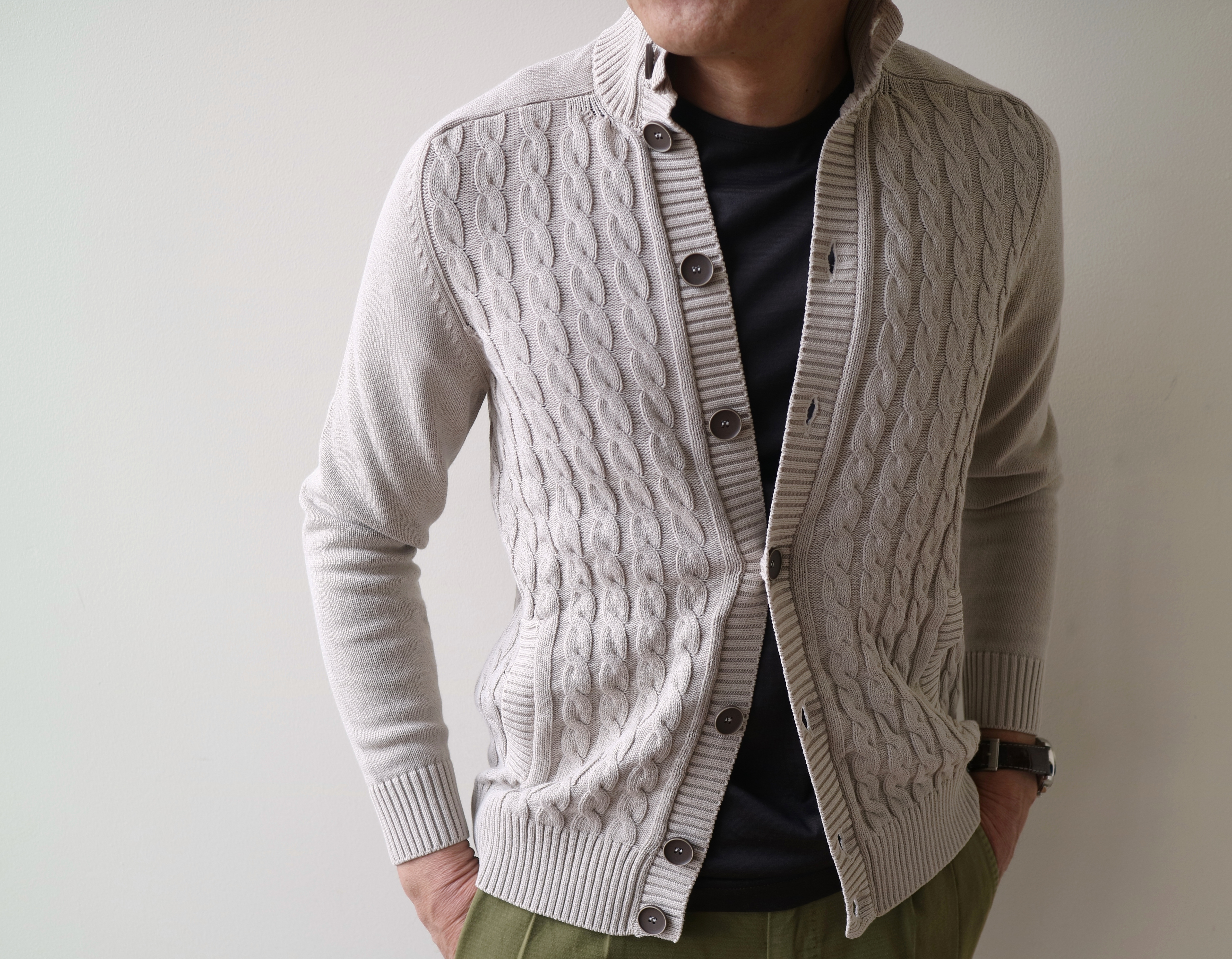 お持ちでない方も、今まで敢えて定番を外していた方も、シーズンを長くカバー出来るコットンカーディガンは、どちらか1色を手元に置いておくと良いでしょう。