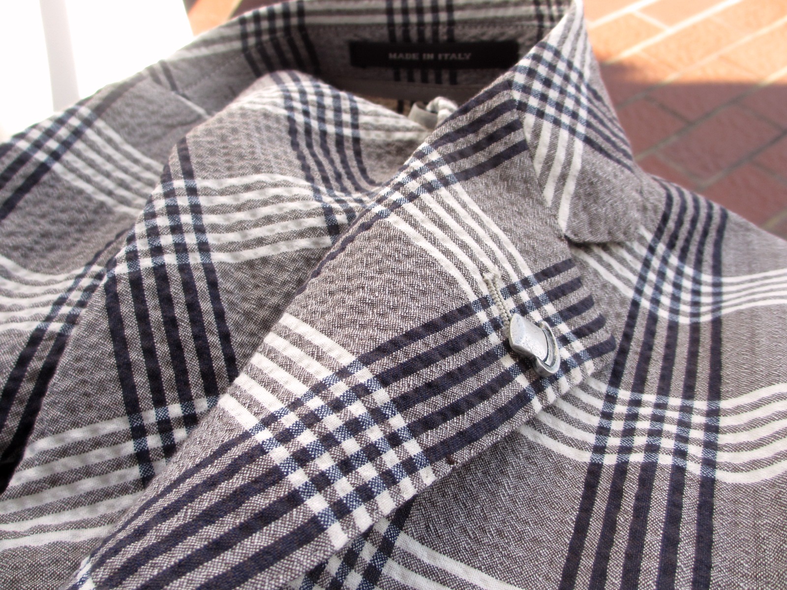 ストレッチの利いた、伸び~るシアサッカー地ジャケットは、春一番に吹かれれば、どこまでも飛んでいってしまいそうな、そんな軽い着心地です。基本ベースは「MONTECARLO」ですが、ややゆったりとした作りになっています。