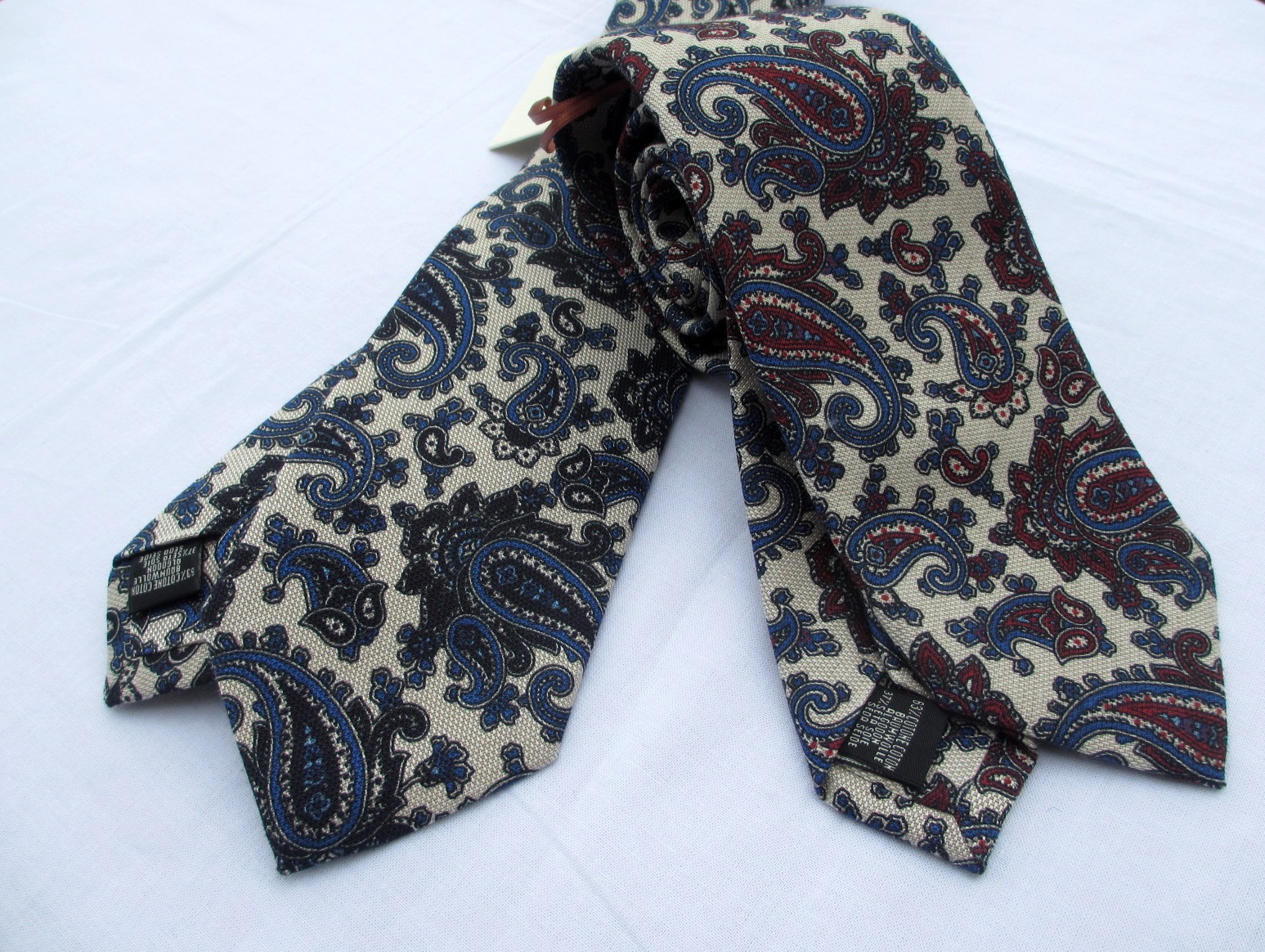 コットン・シルクのペイズリー柄タイ。コットンの混率が高いことで、シルクの光沢が抑えられ、柔らかな発色です。ベースもホワイトではなく生成りがかっているため、アンティークな表情。インパクトのある柄ですが、派手になることはありません。![]()