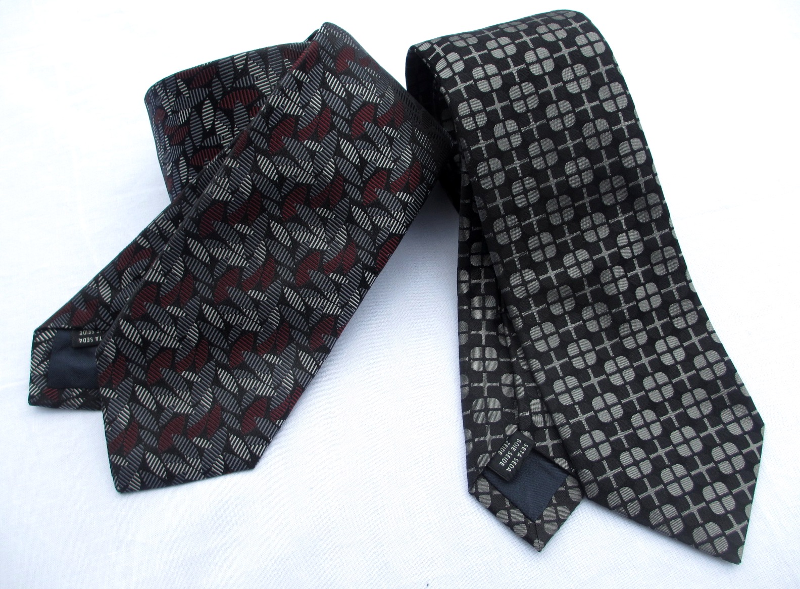 【Holliday&Brown/ホリディ&ブラウン】、今季セレクトの最後を飾るのは、モダン柄です。十字をモチーフにしたモノトーンとモノトーンの中にレッドを差し込んだリーフ柄。生地スワッチの中で一際、目だっておりました。面白いVゾーンが出来上がるはずです。