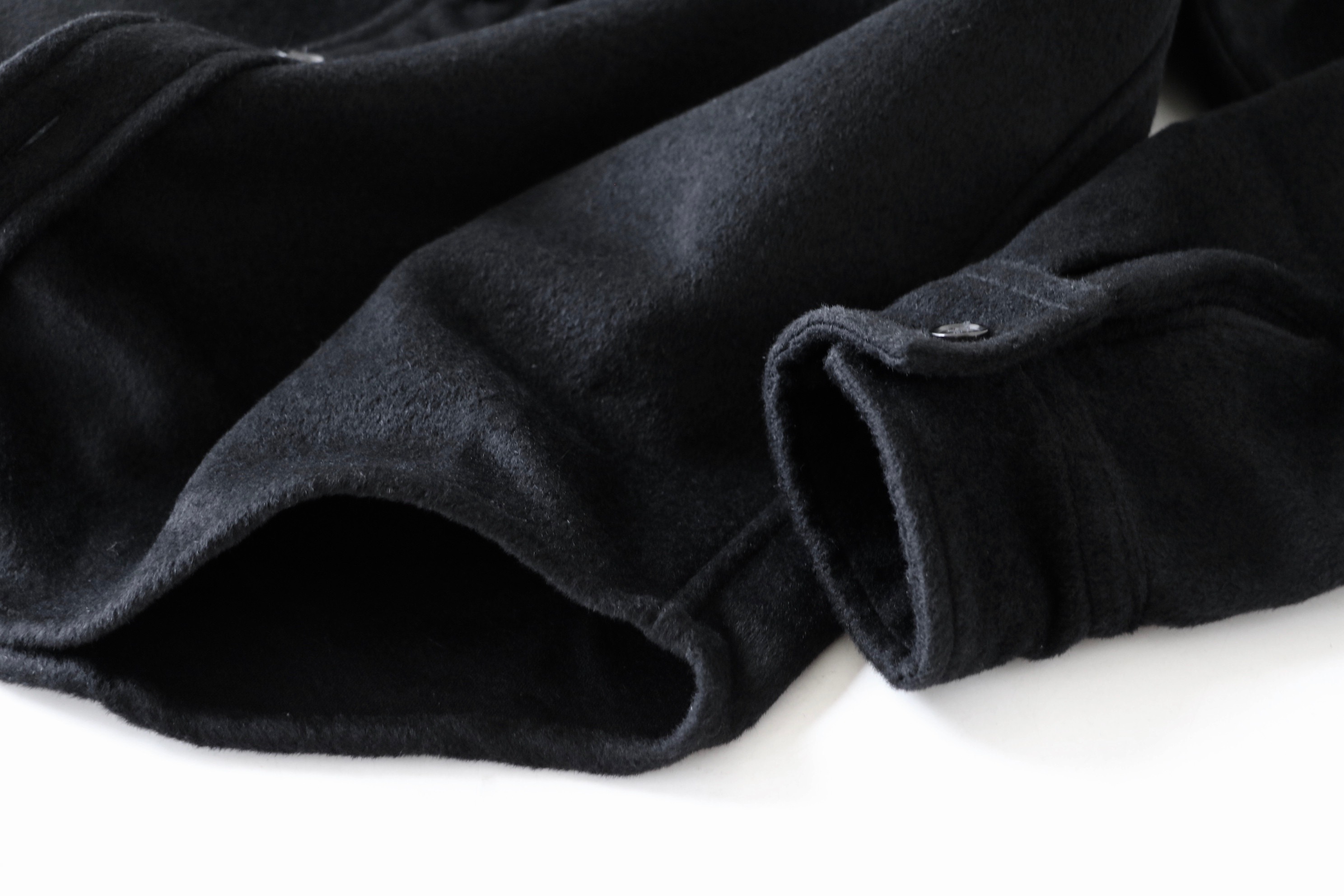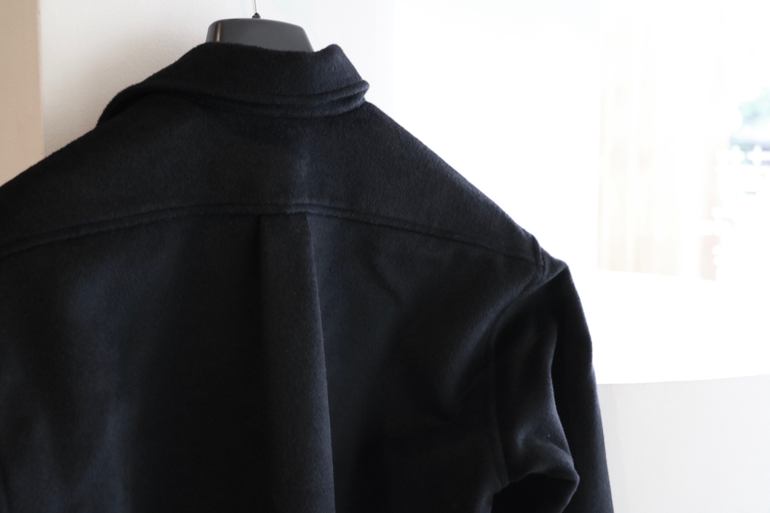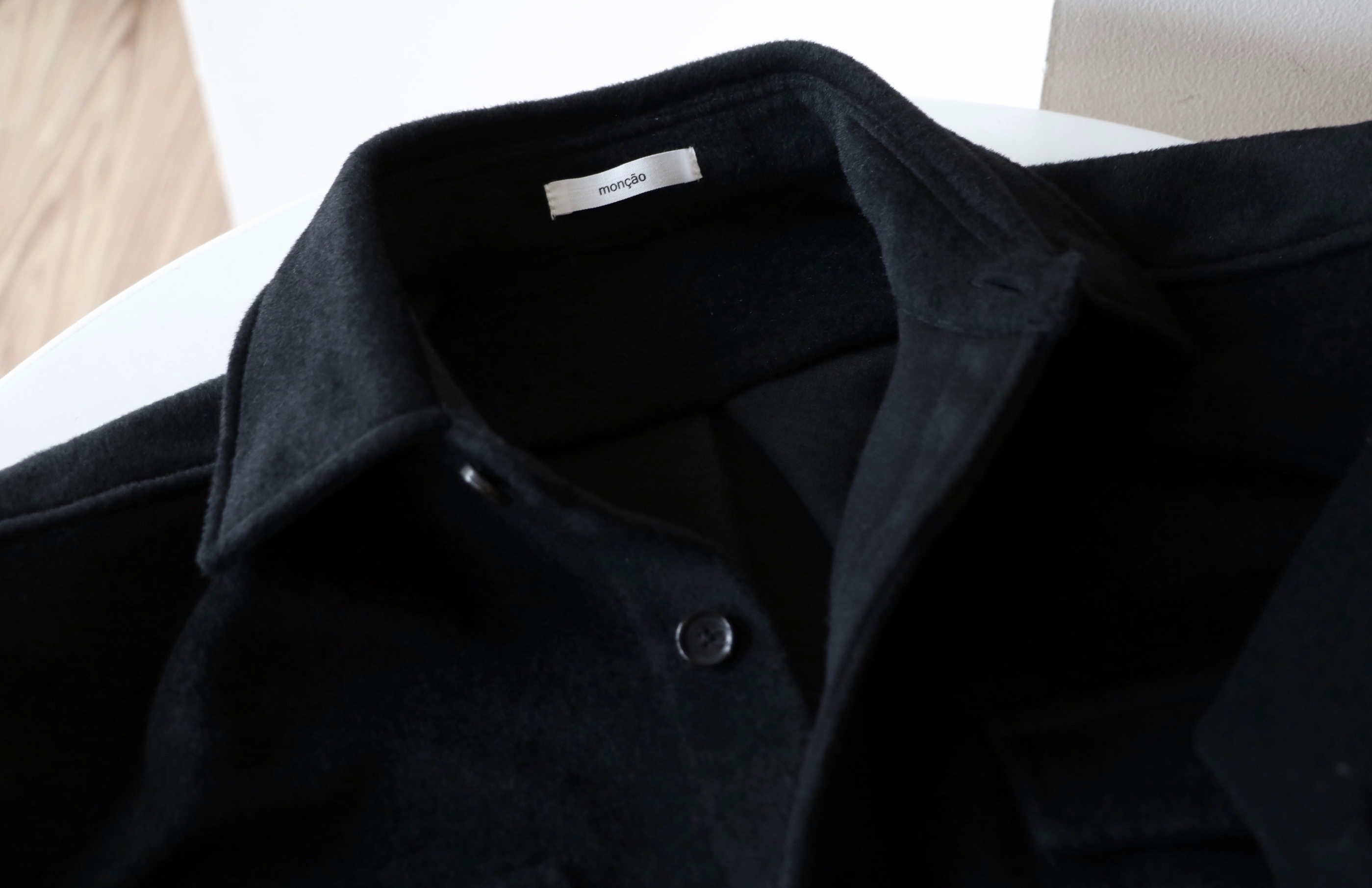 メルトン生地ですが、コートほどの厚さはなく、その表情はしなやか。美しい起毛感と光沢は、モヘア混ウールの素材混率が為せる技でしょう。気取らずに着ることのできる、ラグジュアリーなシャツジャケットです。さりげなく贅沢に、そしてエレガントに、一際際立つ格好良さ、などと美点をいくつか挙げることのできる【monção/モンサオ】です。なんて、少し褒めすぎたかもしれません。