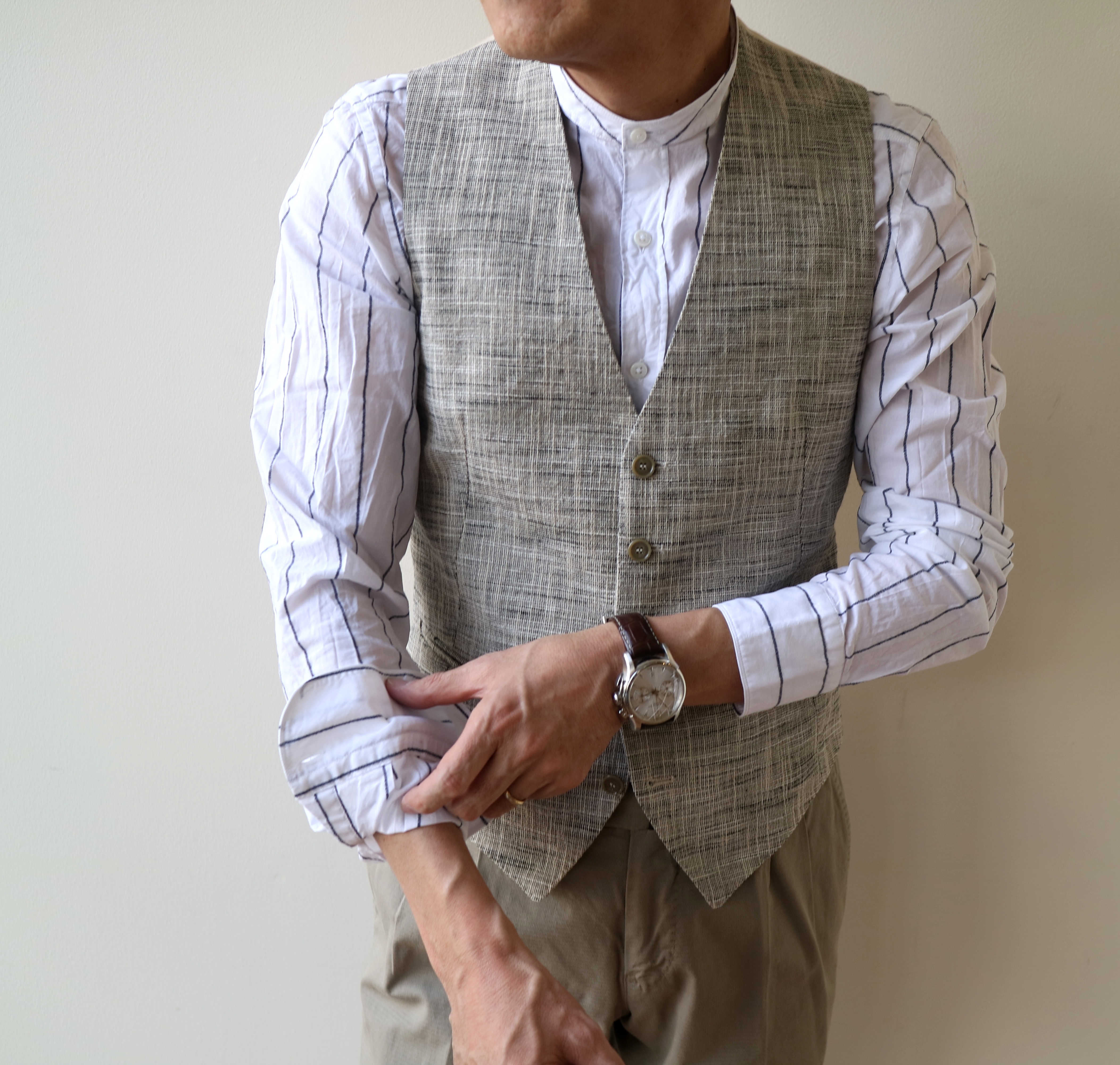 無地感覚で使えて、無地よりも表現力のあるジレは、様々なシーンで活躍するはずです。