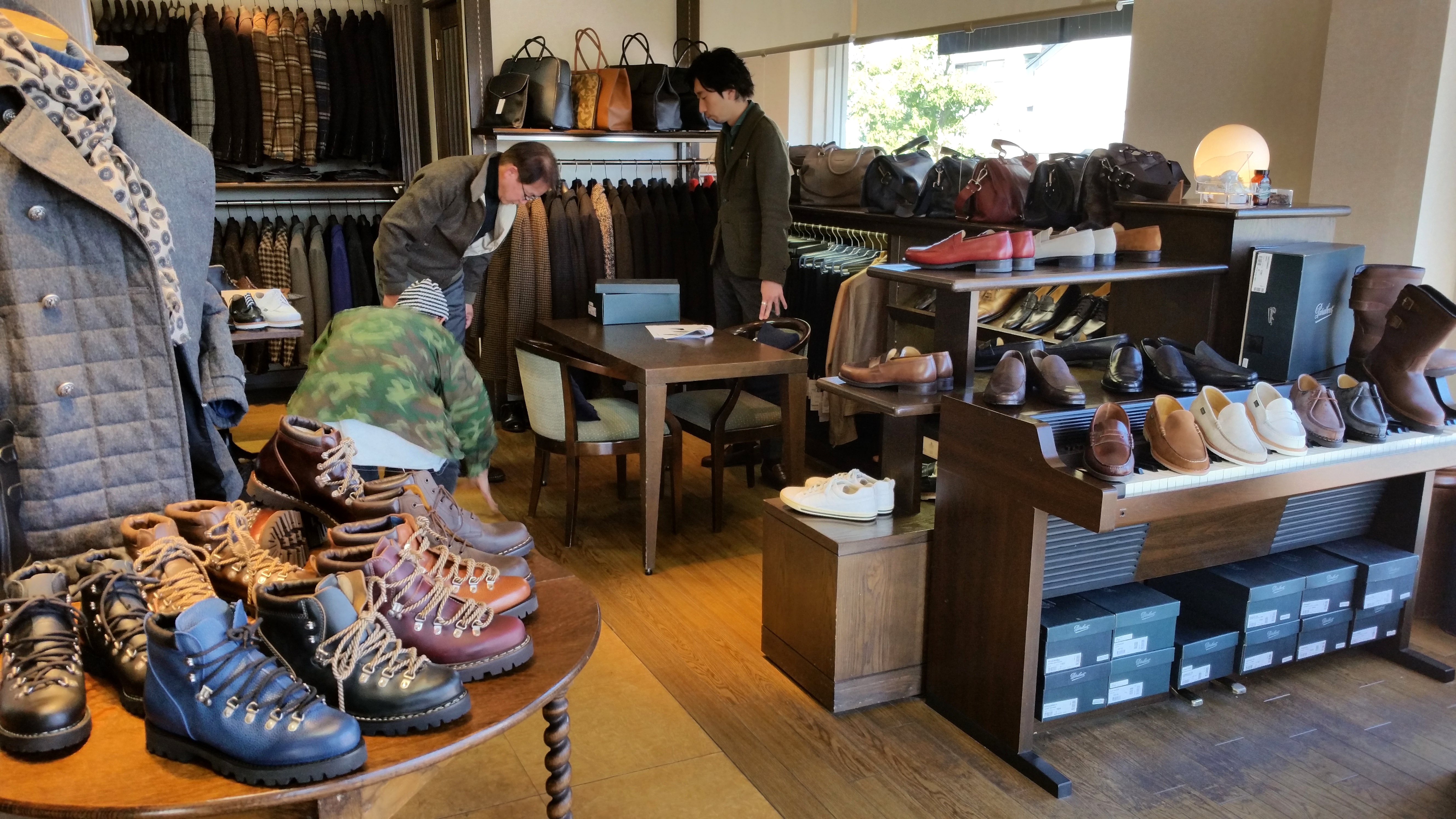 青山にあるParaboot(パラブーツ)のショールーム。展示会が行われたのは、夏の暑い盛り。この日の空は厚い雲に覆われていて、いつ降って来てもおかしくない天気でした。行く先々の道路は水浸しなのに、道すがら、一度も傘を差さずに濡れることもなく目的地に到着。なぜか不思議に感じた日でした。若い頃は雨オトコ。出かける計画を立てると、必ず、その日は雨。でも最近は、何故か逆です。台風までが避けていってくれるような、そんな科学的根拠のないことを時々、真剣に考えたりもしております。明日、明後日と「Paraboot TRANKSHOW」。台風も来ないし(当たり前です)、雨も降らない(天気予報を見れば、晴れ)買い物日和になることでしょう。