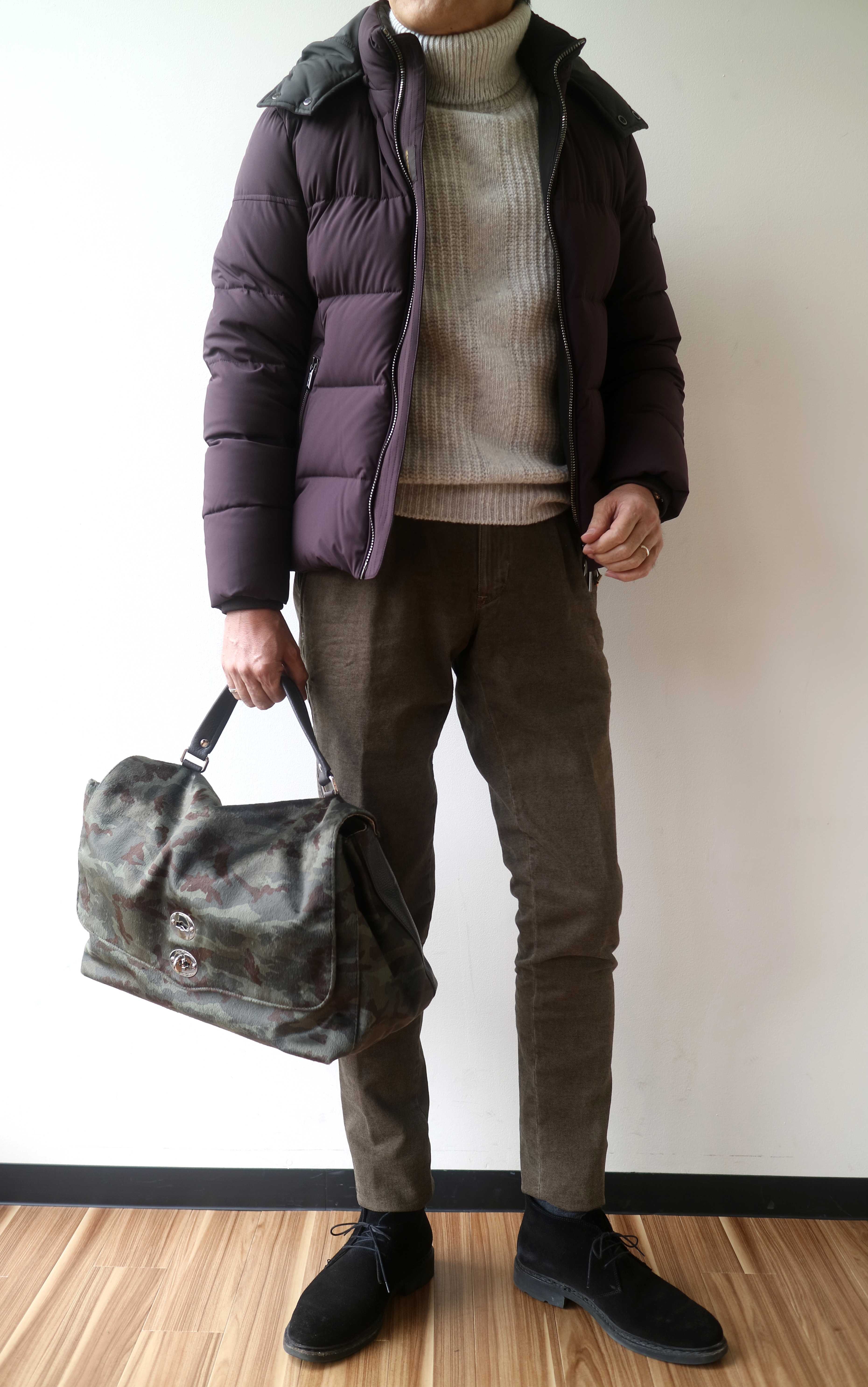 正直な組み合わせ。正直とは、今欲しいアイテムを使ってのコーディネートということです。昨夜出かけたピザの美味しいイタリアン(近所ですので、内緒。ナグラさん御用達でもあります。昨夜もニアミスでした)。着てたのは、【Settefile Cashmere/セッテフィーリ カシミア】のカシミアニットとMooRER(ムーレ)のダウンベスト。休日には最適な服装スタイルです。そして今気になるのが、このタートルとダウンジャケット。困ったことに、購買意欲は尽きません!!