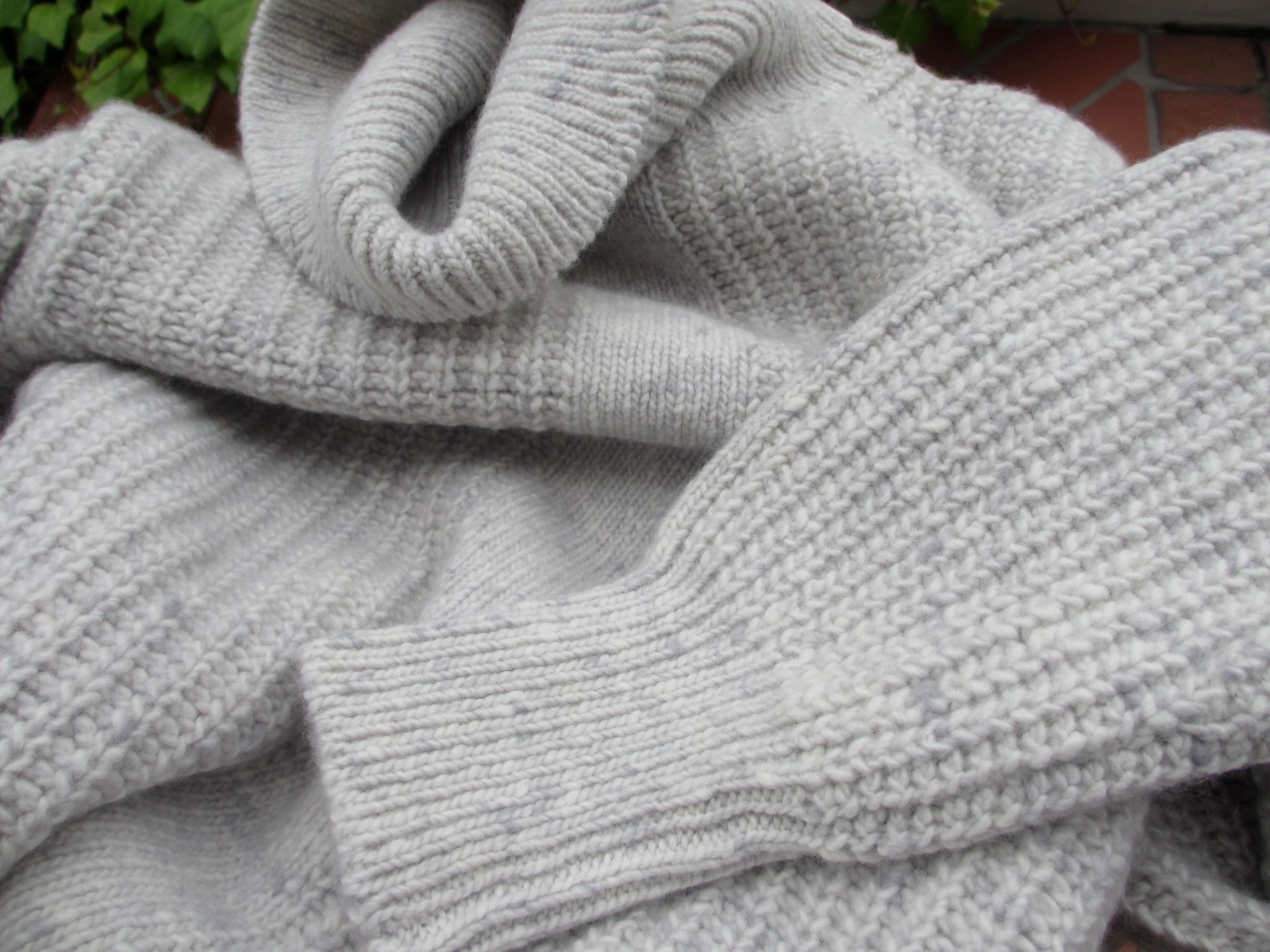 カシミア100%ではありませんが、30%混率の手触りは、コシのある程よい柔らかさです。シンプルながらも中央部の編地変化と控えめなカラーネップが豊かな表情を作り出し、優しい淡色も、このブランドならではの色彩感覚を表現しています。