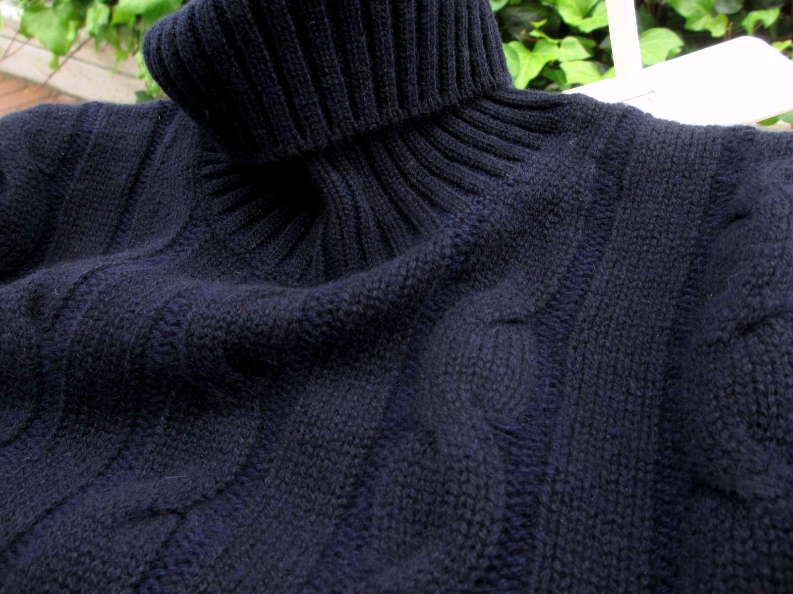 MODEL:カシミア ケーブル編みタートルネックセーター