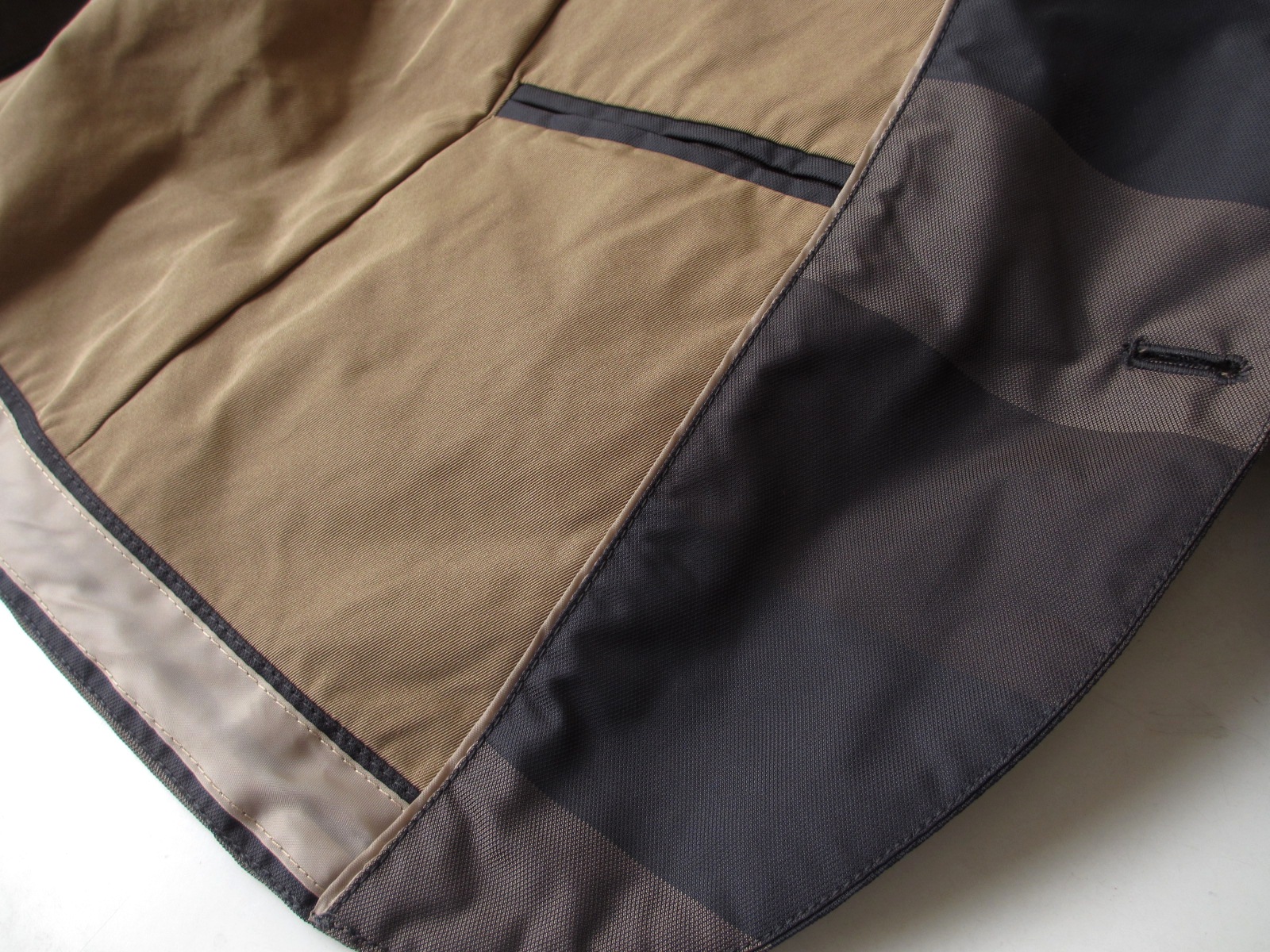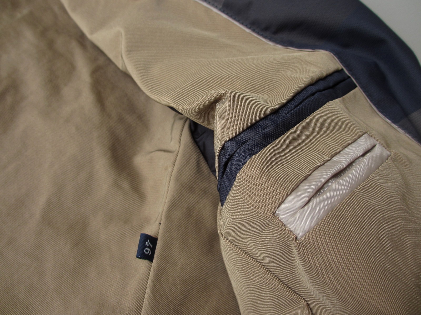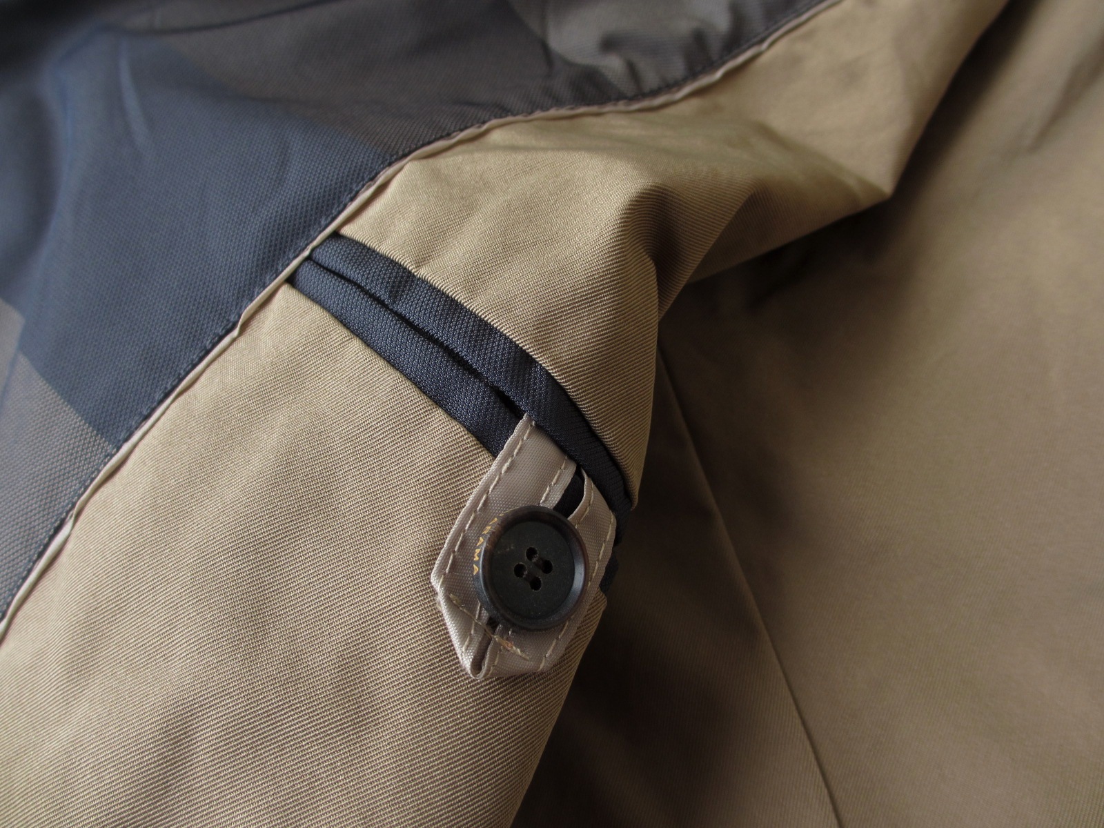 表地は、超々耐久撥水性のあるGORE-TEX採用。防水、防風性に優れ、高い透湿性を持つ魔法の素材です。「水蒸気は通し、雨風は通さない」と、あのゴム引きを開発したマッキントッシュが生きていたら、どれほど驚くでしょうか...は、以前にご案内させていただいた時の引用です。内側左には、止水ジップ付きポケットと2段構えのサブポケットが付きます。