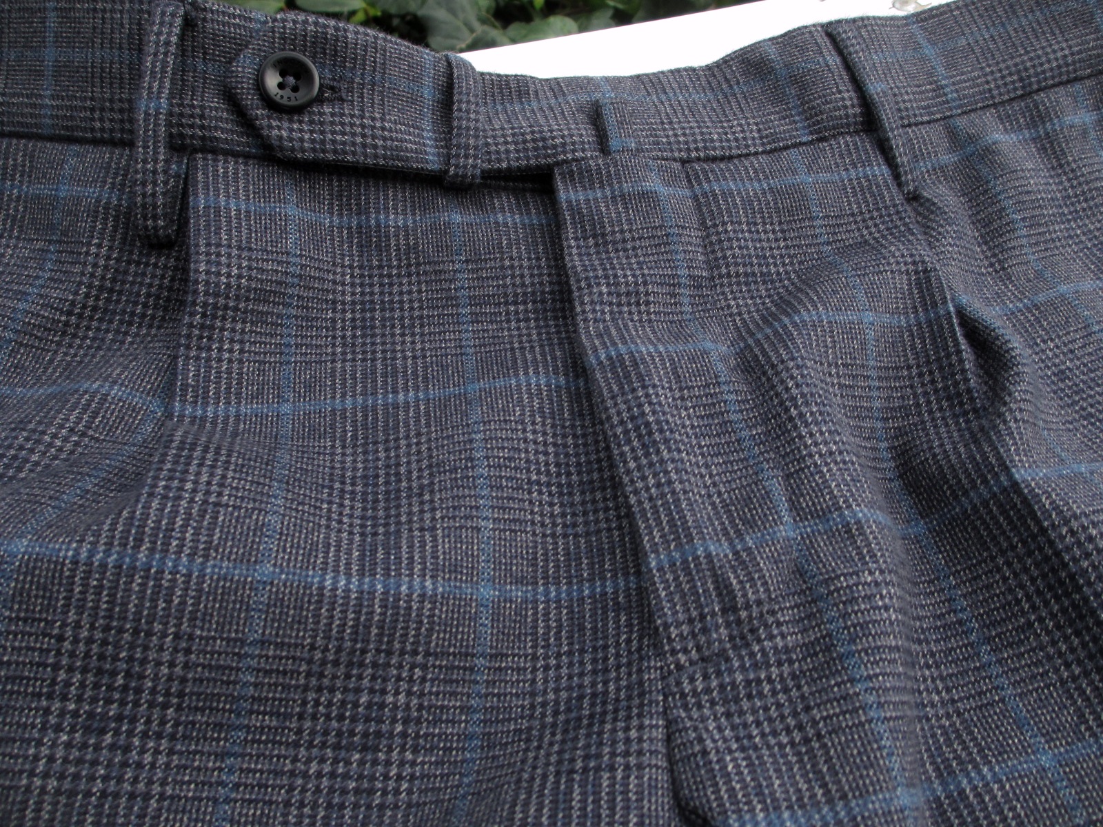 遠目には無地に見えますが、近づけば、細かなハウンドトゥース柄に。ブルー系の色出しは本当に巧い【ISAIA/イザイア】。温もりのある奥行きのある生地感。「ドロップ9Cで作りたかった!!」なんて、今更遅い話です。