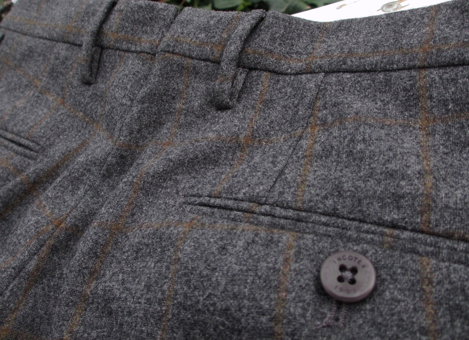 ミディアムグレイ(実物は写真より、やや濃くなります)にオリーブブラウンのウインドウペン柄は、フランネルタッチのウール100%。定番モデル「1NT035」でセレクトです。