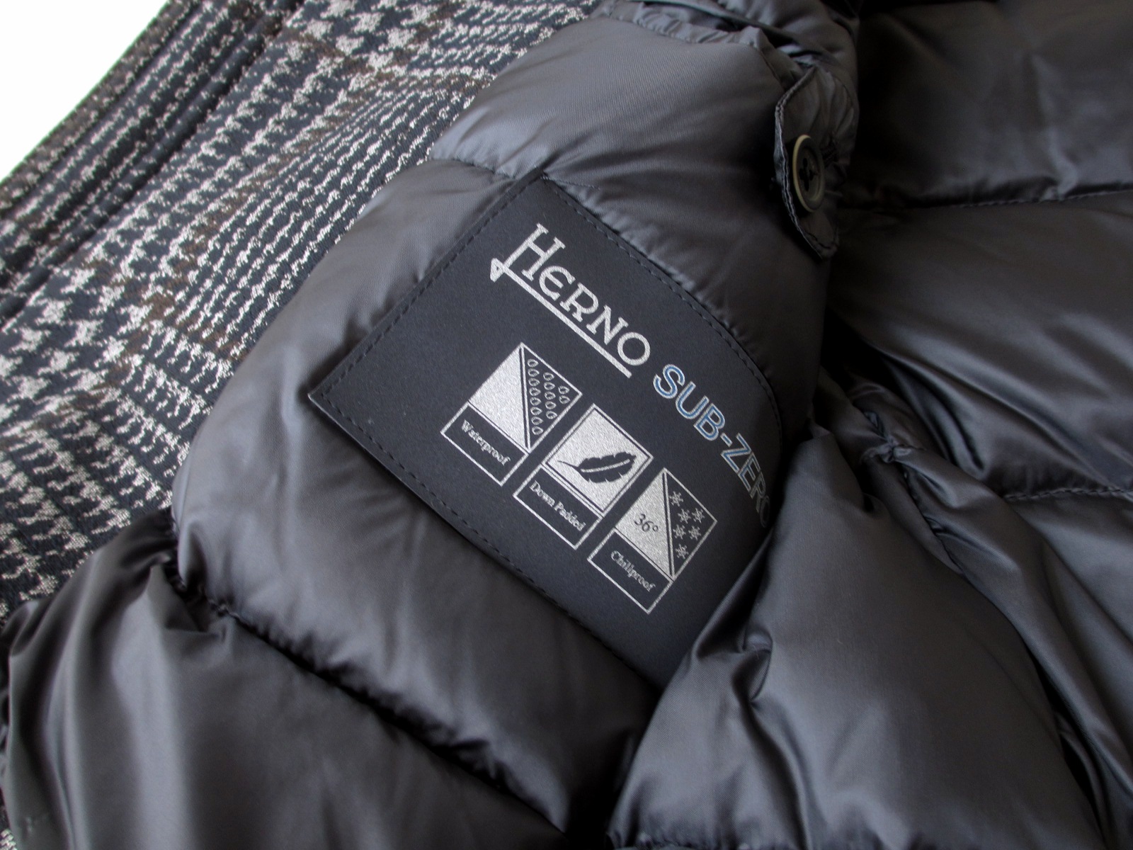 機能性はもちろん、細部への拘りあるデザインも【HERNO/ヘルノ】の魅力。表側の両サイドのウォームポケットは飾りの釦止めフラップ、内側には左胸部分にジップ付きポケット、右胸にはタブ付きポケット、さらに左下ウエスト部分には2室に分かれたサブポケットが付いています。宿泊先から、ちょいと出かけるならバック要らずでしょうか。