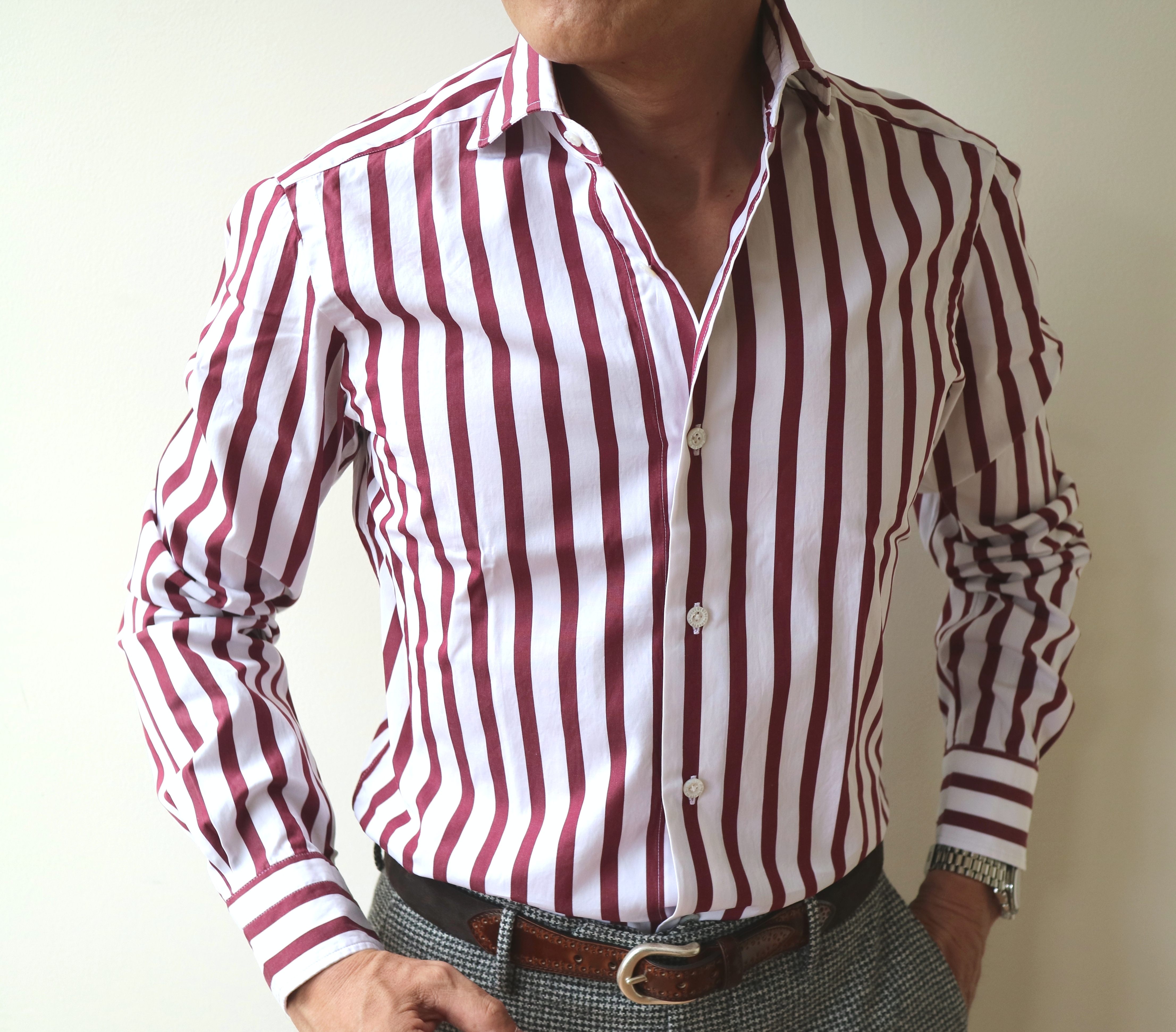 ジャケットを汚さない為にあるシャツは、下着。これはヨーロッパ的な考えで、日本ではあまり浸透していないようです。仕事で着るシャツは、仕事の環境など事情もありますので、ここでは触れませんが、この「DANDYLIFE」。名前のようにダンディーにかっこよく着るためには、やはり素肌に着ていただきたいですね。