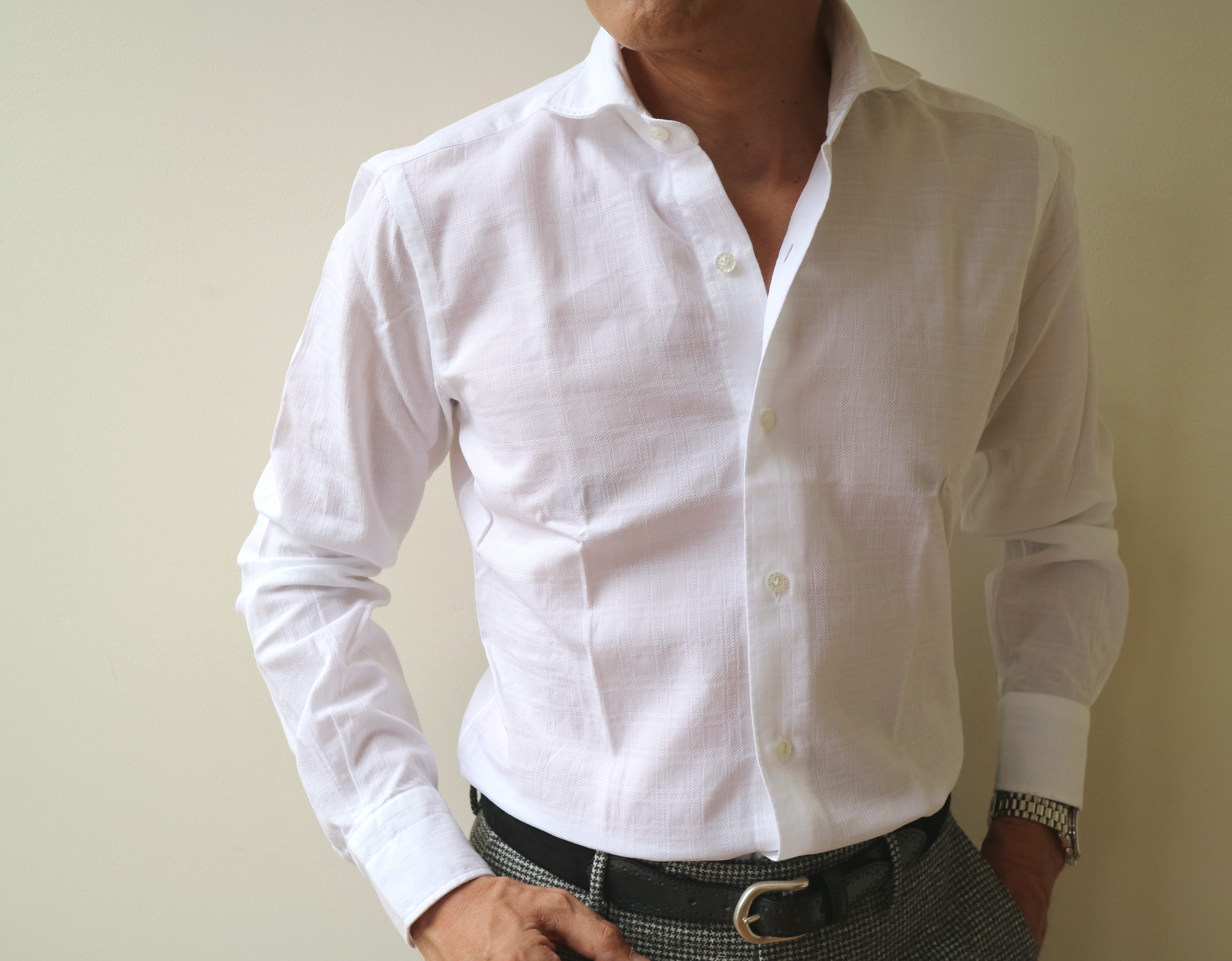MODEL:「DANDYLIFE」 ドビーチェック柄ホワイトシャツ