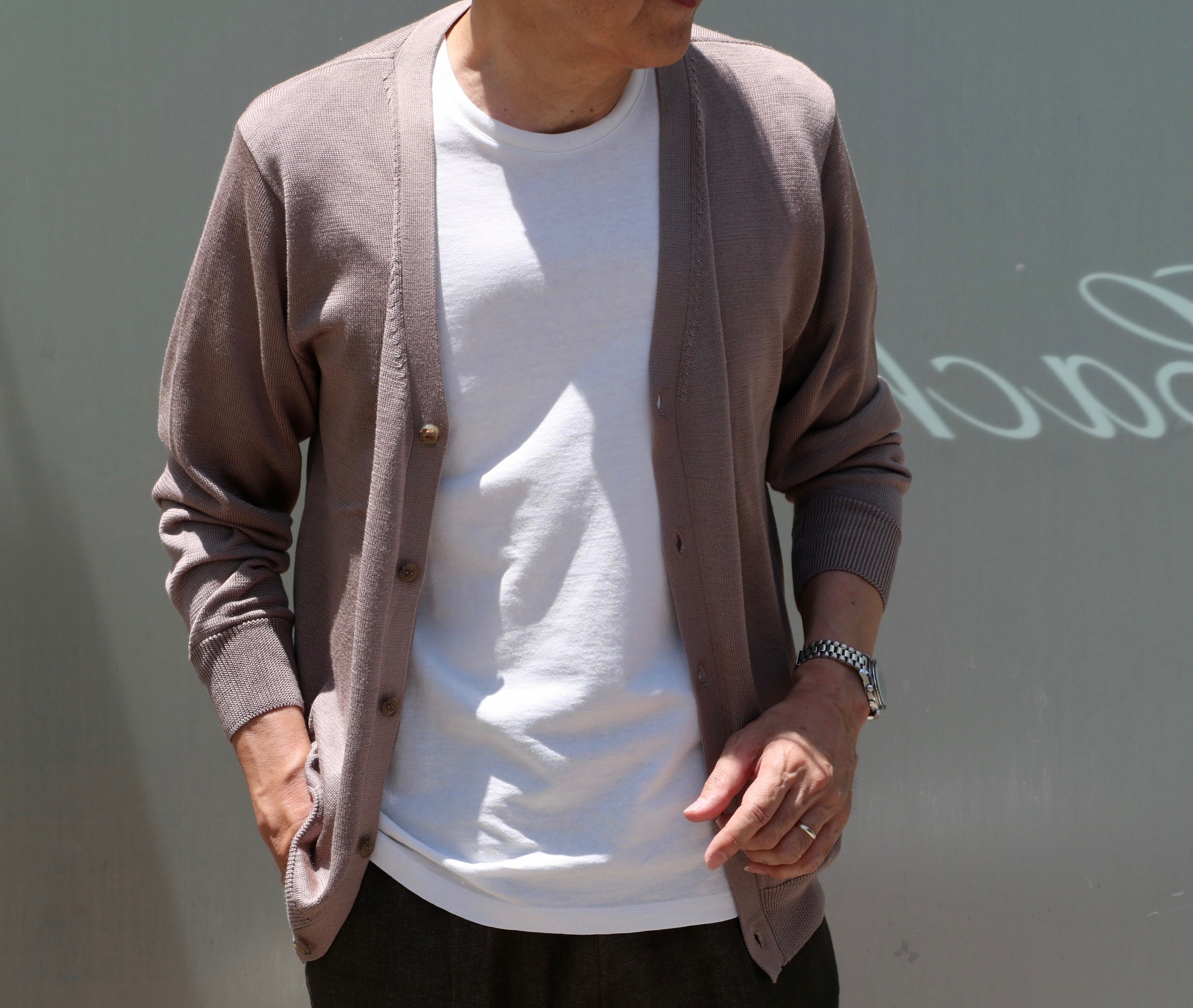 冷房や温度差に、Tシャツだけでは心もとない。そんな時に重宝するのが、このシルクのカーディガンです。シルクの魅力については、7月5日のブログでもご紹介しております。ぜひ巻き戻してご覧ください。