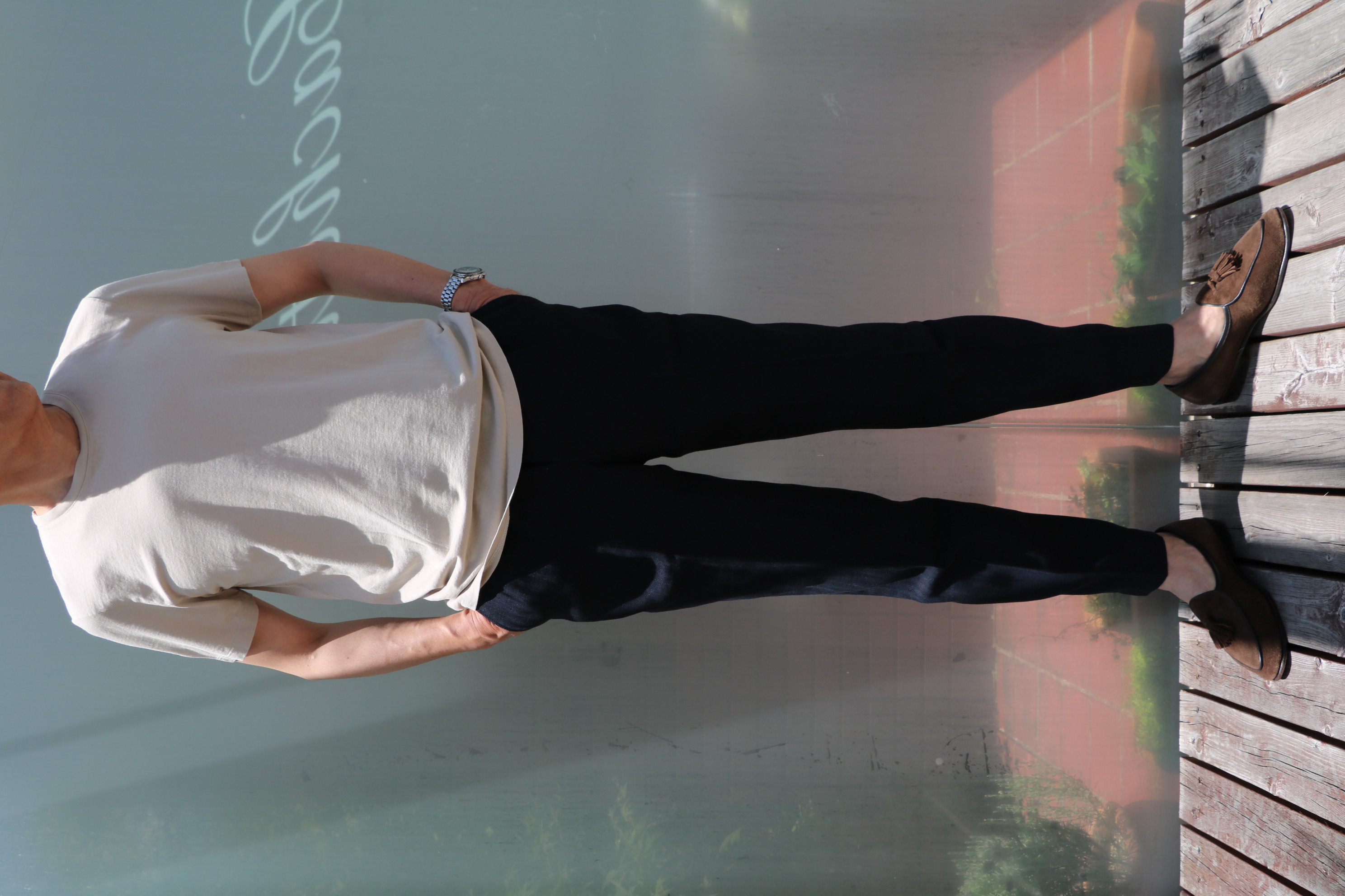 ドイツの次は、1930年ベルギー創業のベルギー王室やDRIS VAN NOTENをはじめとした数多くのメゾンのOEMを手掛ける老舗のパンツ専業ブランド【Borelio/ボレリオ】。その中でも最もリラックスして穿いていただけるドローコード付きのイージーパンツ「CHAD2」。ラフなデザインながら、クラシックな素材感と美しいラインを描く、唯一無二のパンツとして人気上昇中です。こちらも割引率を上げてのご提供となります。