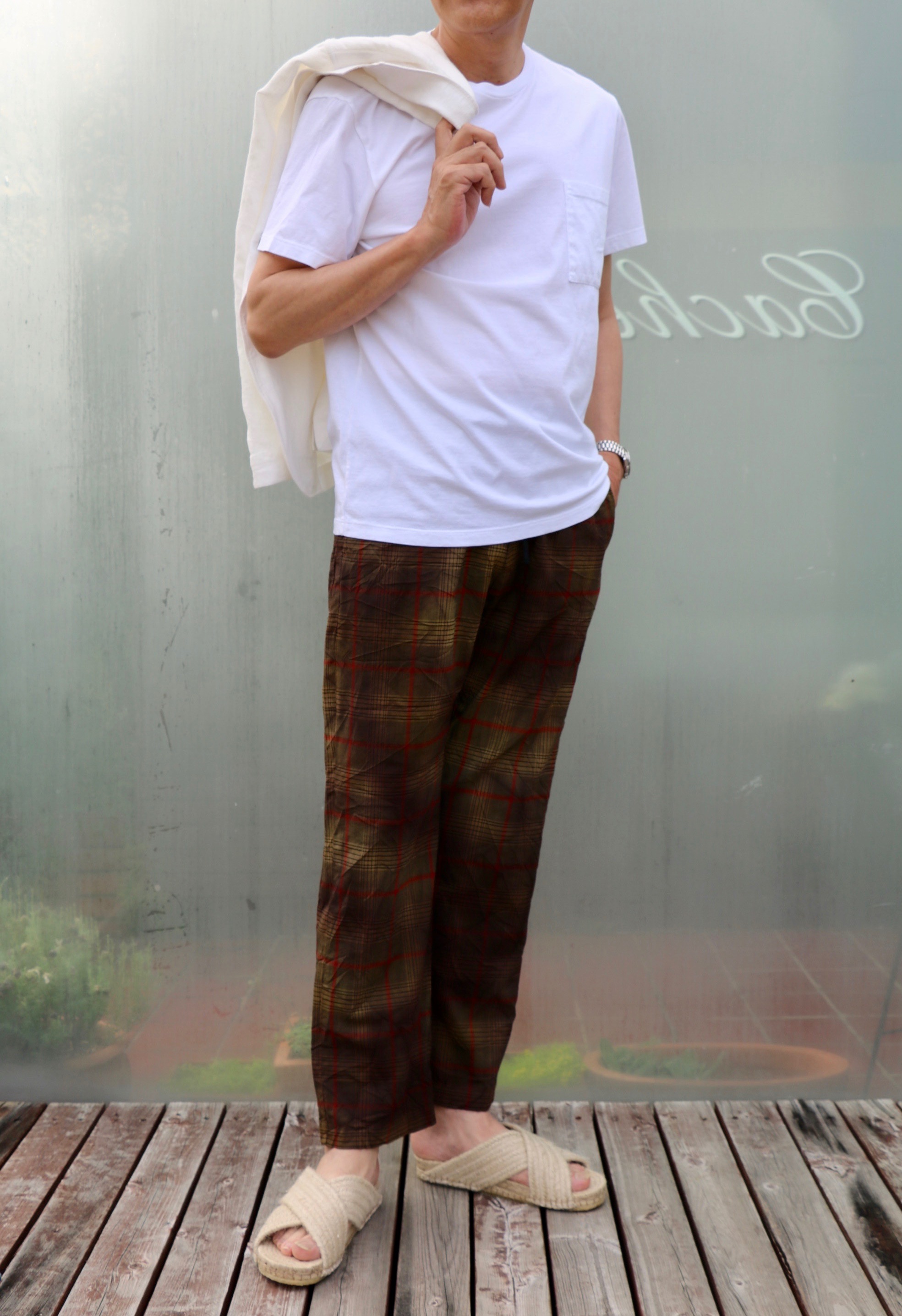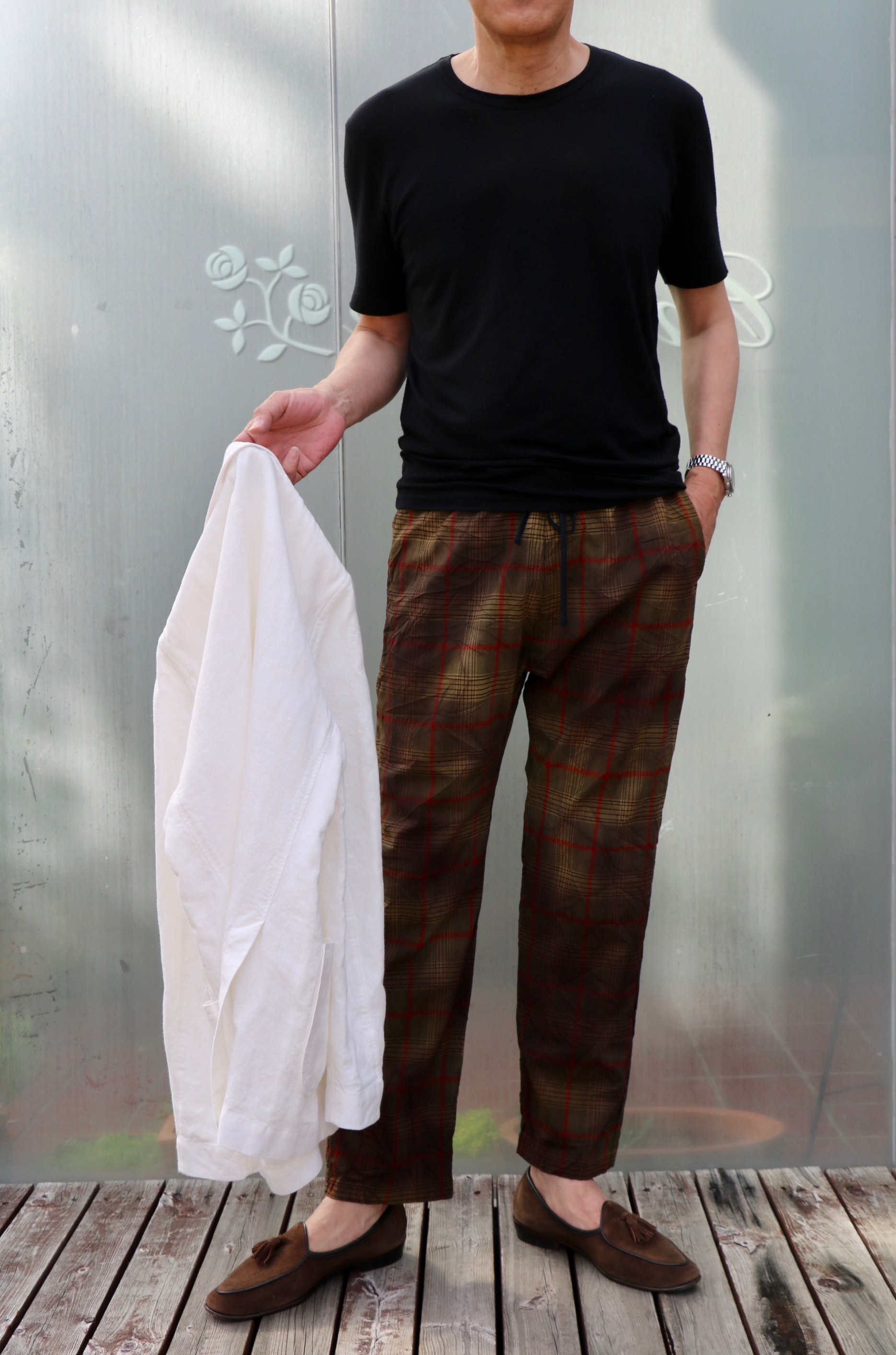 まずは、着ていたPHIL PETTER(フィルペター)のTシャツに合わせて。軽くて、ドライな穿き心地です。