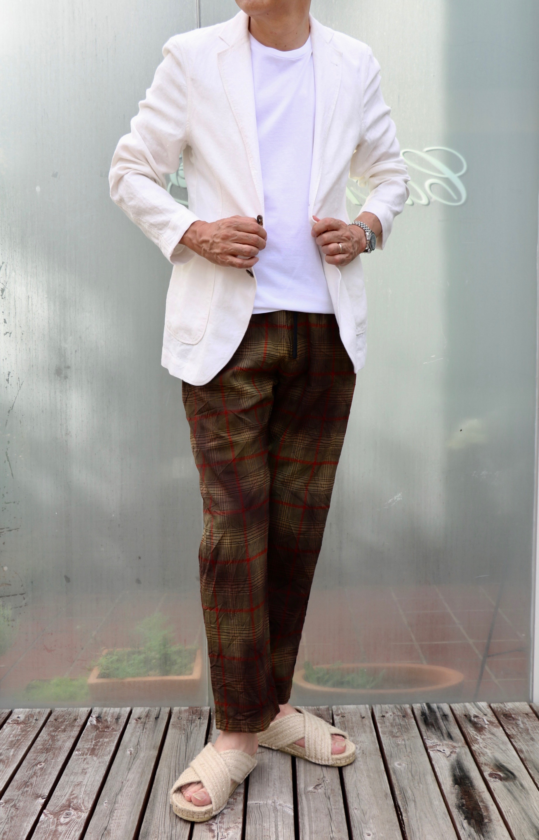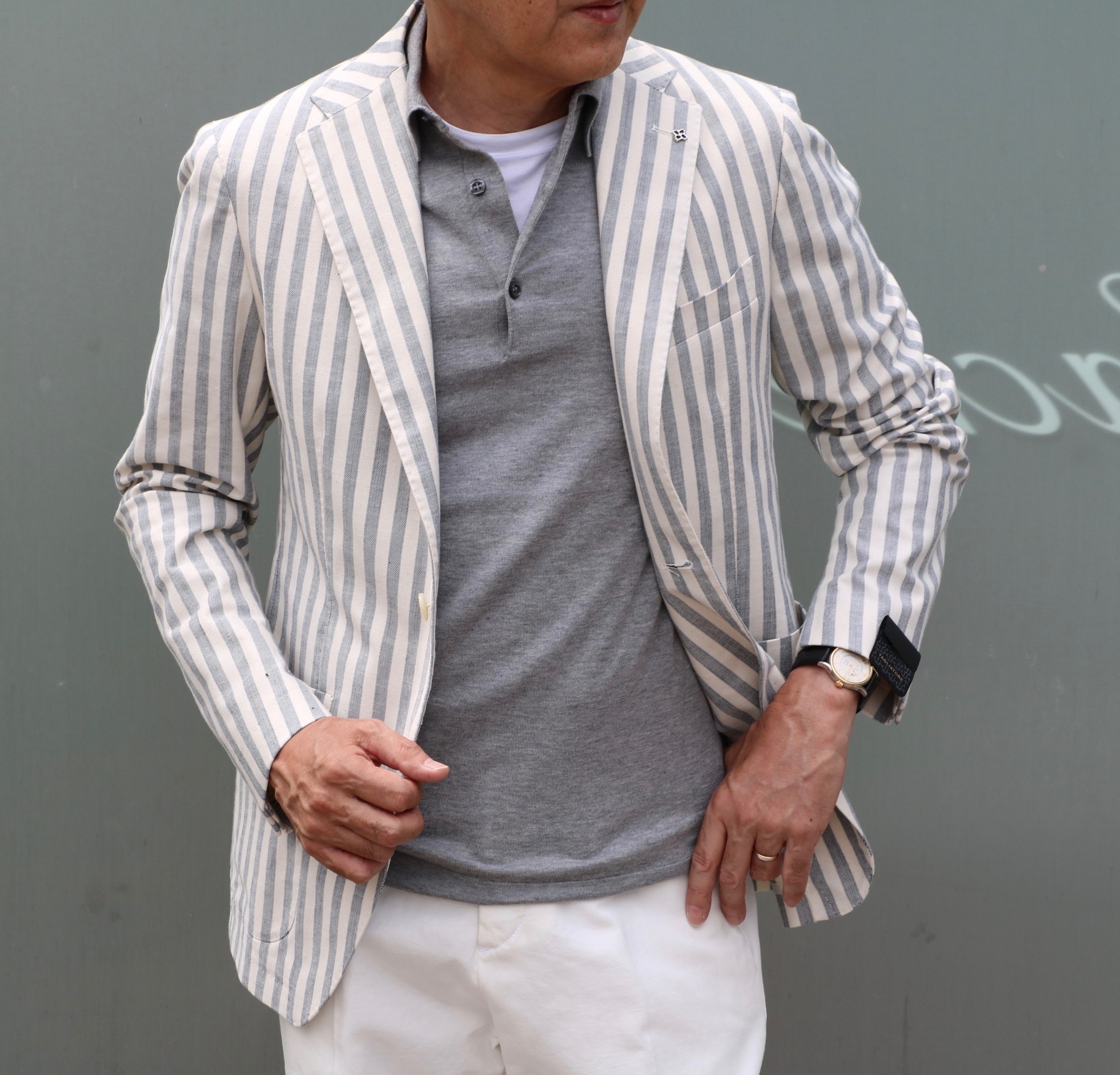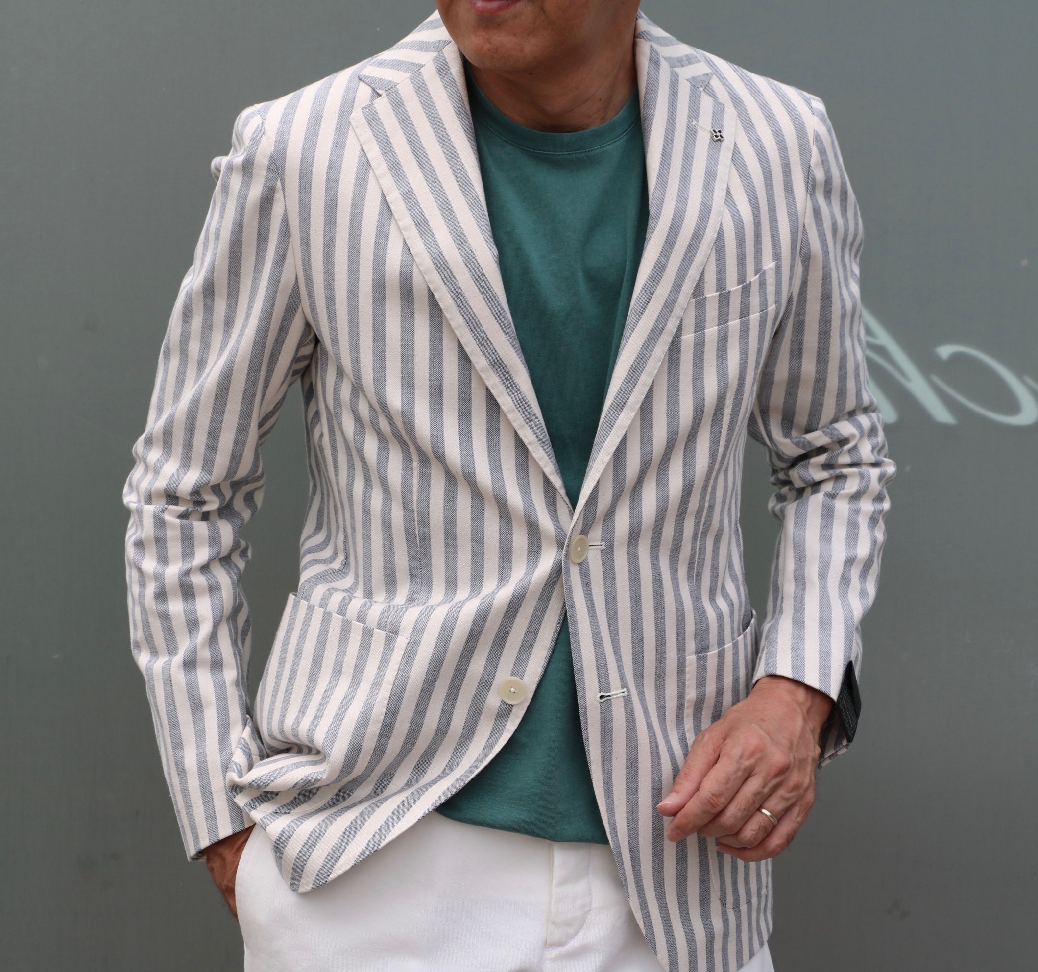 リネンのジャケットを羽織れば、ここは、まさにリゾート地。"夕暮れ時の海辺の散歩。隣には髪をなびかせた美しい..."なんて、いつまで経っても妄想に成長はありません。