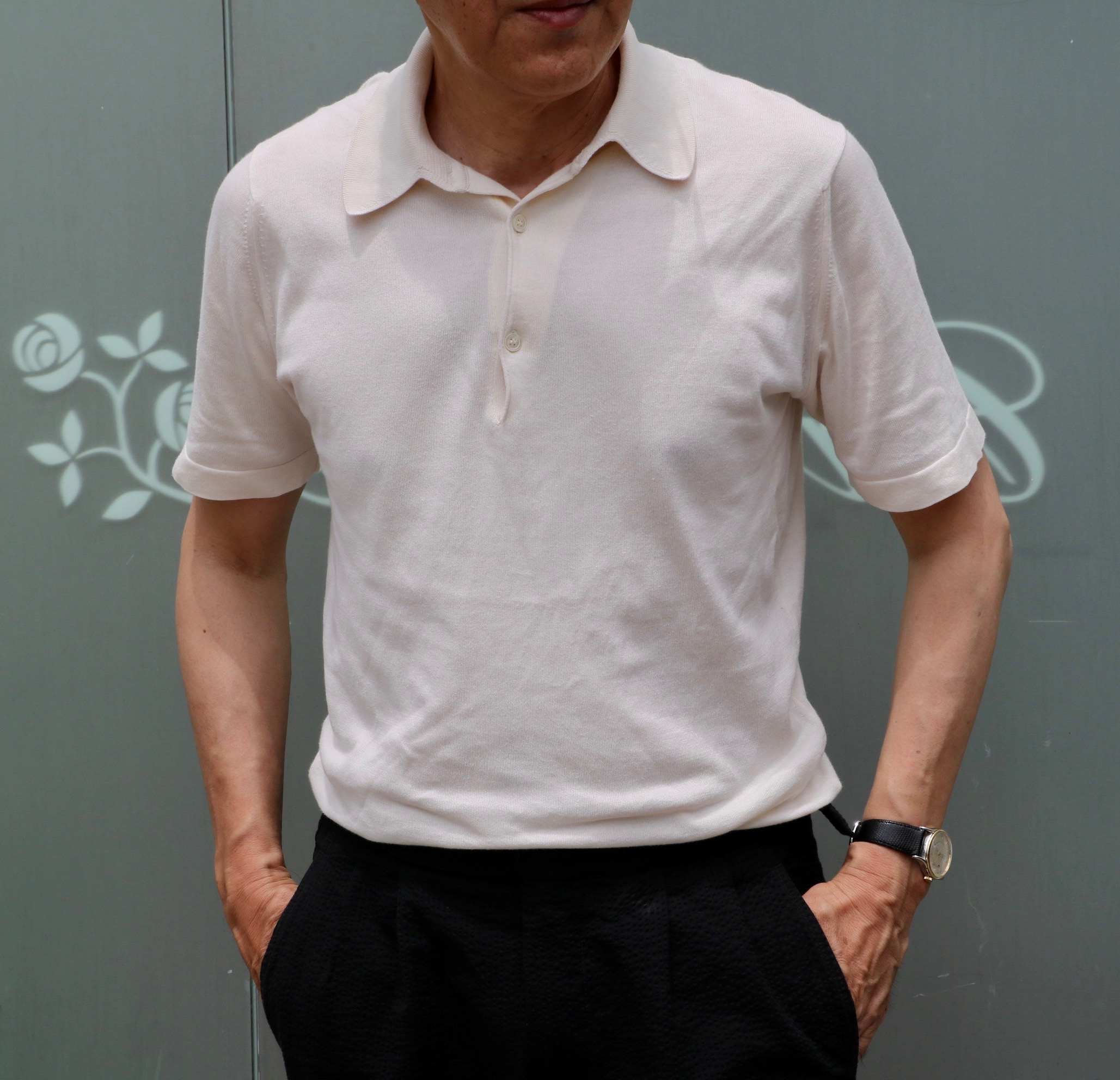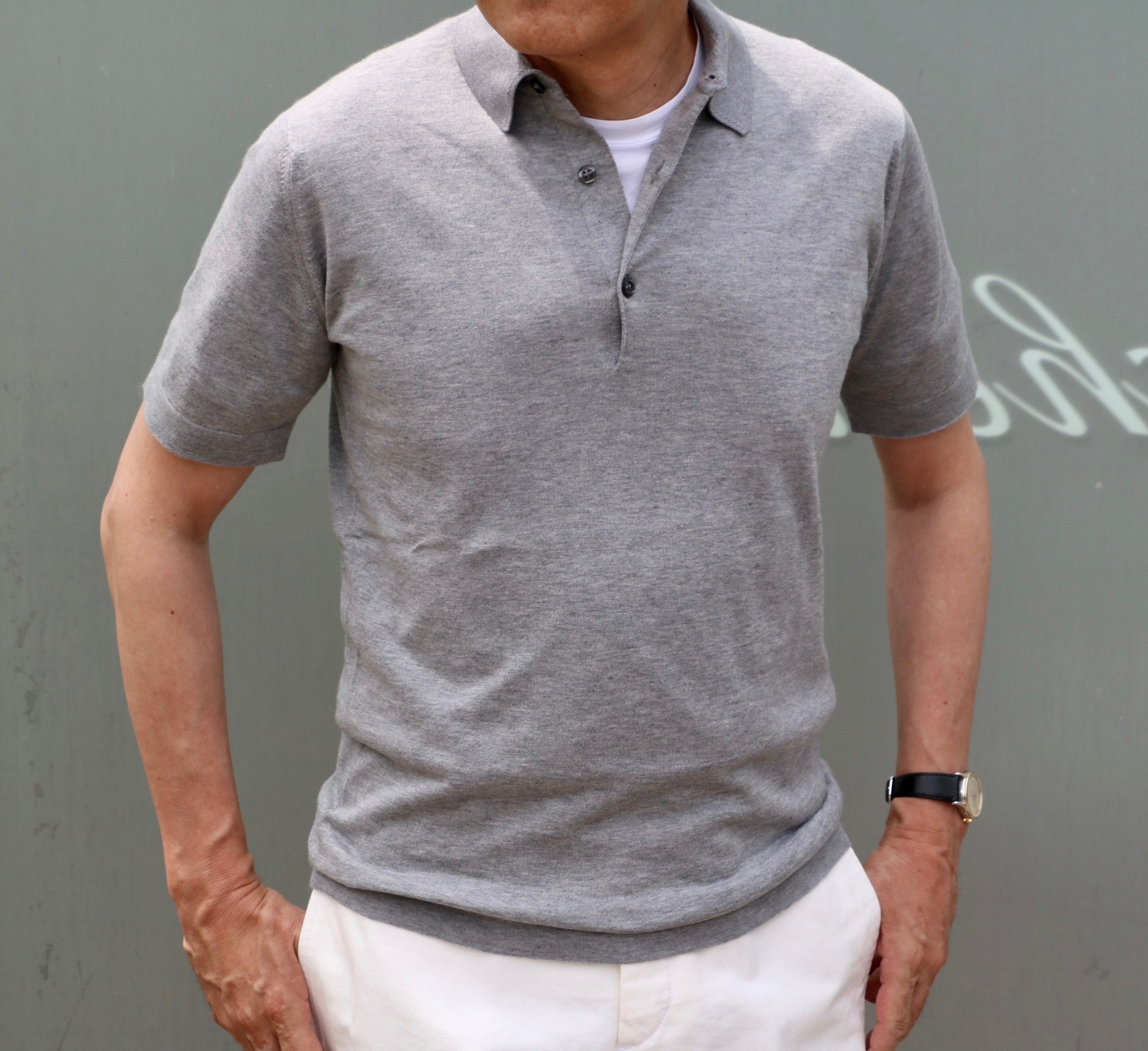 JOHN SMEDLEY(ジョンスメドレー)の30Gウェルトスリーブニットポロ「MY CROFT」。サイズSを着ております。素肌で着ていただければ、とろけるような着心地に。もうすでに体感なされている方は多いはずですね。取り扱いも楽な、贅沢な日常着として欠かせないブランドです。他のジョンスメドレーは、こちらからご覧いただけます。