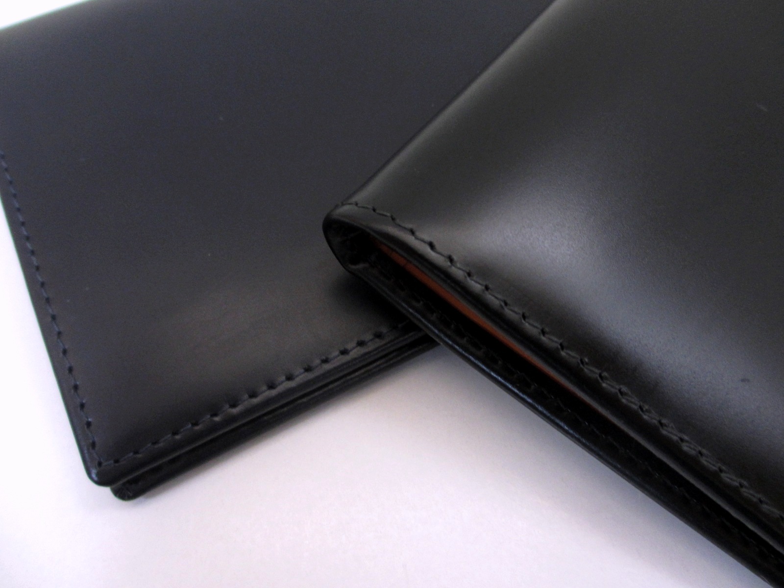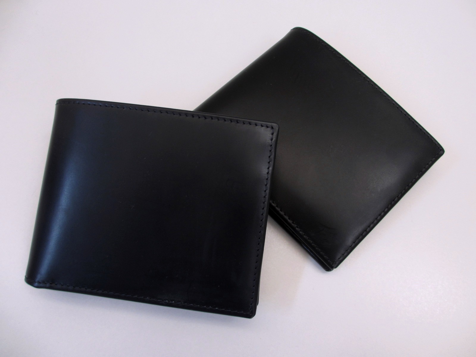 今回、長財布、二つ折りの財布、名刺入れを、それぞれネイビーとブラックでセレクトしています。
