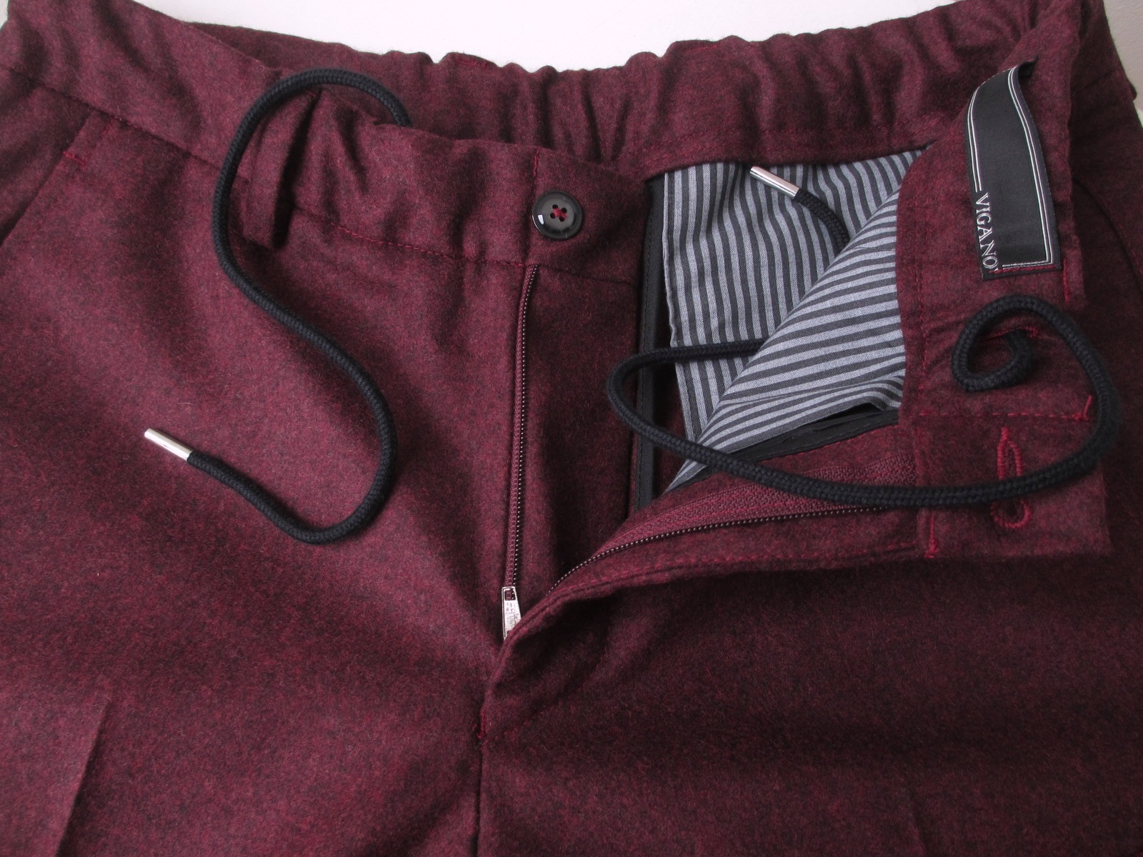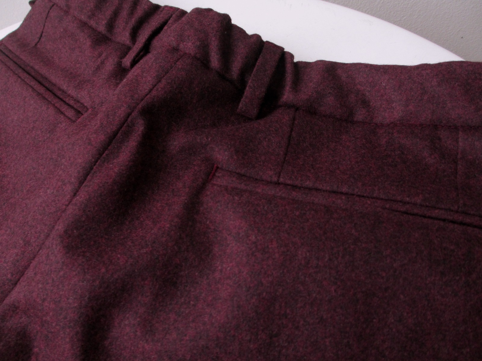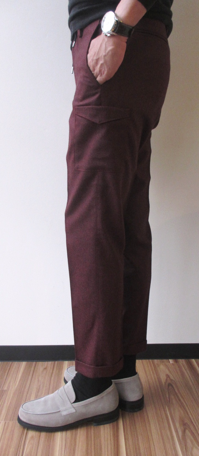 ストレッチの効いたウールフランネル。質感のある風合いとブラックを織り交ぜたボルドーが美しいハーモニーを奏でます。このパンツを穿いて、紅葉を見がてら、ドライブに行きたい...もちろん心地よい音楽を聴きながら。