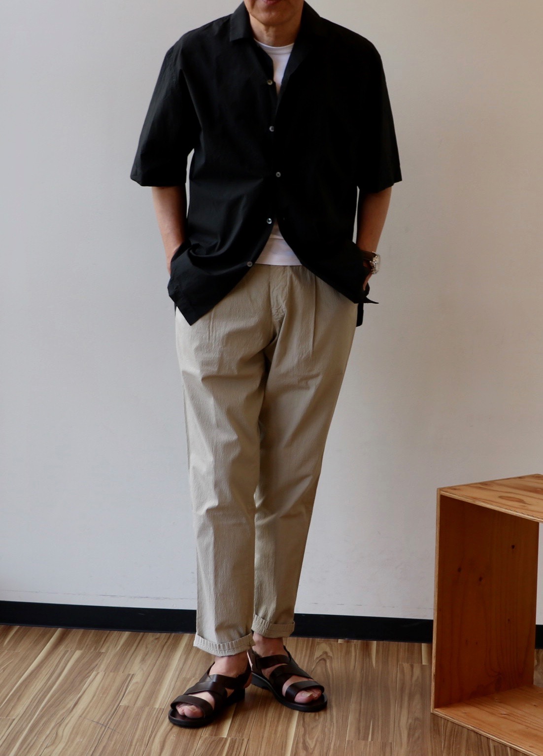 ノープリーツながらも、程良くゆとりを持たせたテーパードシルエット。いかがでしょう。色違いのネイビーもご用意しておりますので、夏のパンツの充実にお役立てください。インコテックスのご紹介は、こちらのブログでご覧いただけます。