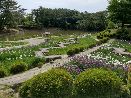 箸休めです。、東公園に咲くハナショウブが見頃です。目に優しい色合いです。
