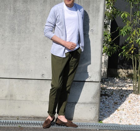 最後のコーディネートは、Tシャツ(PHIL PETTER)にストールカーディガン(COMOLI×norlha)を羽織っています。動画の中で「どんな時に着る?女性を口説く時?」の質問に、「リラックスした時に」と否定をしておりましたが、常に女性の目を気にしている私スグル。スーツ姿でもラフなスタイルの時でも臨む気持ちは同じです。60を過ぎた男に必要なのは、金ではありません。清潔感なんです。ただ、多少のお金は必要となりますが...
