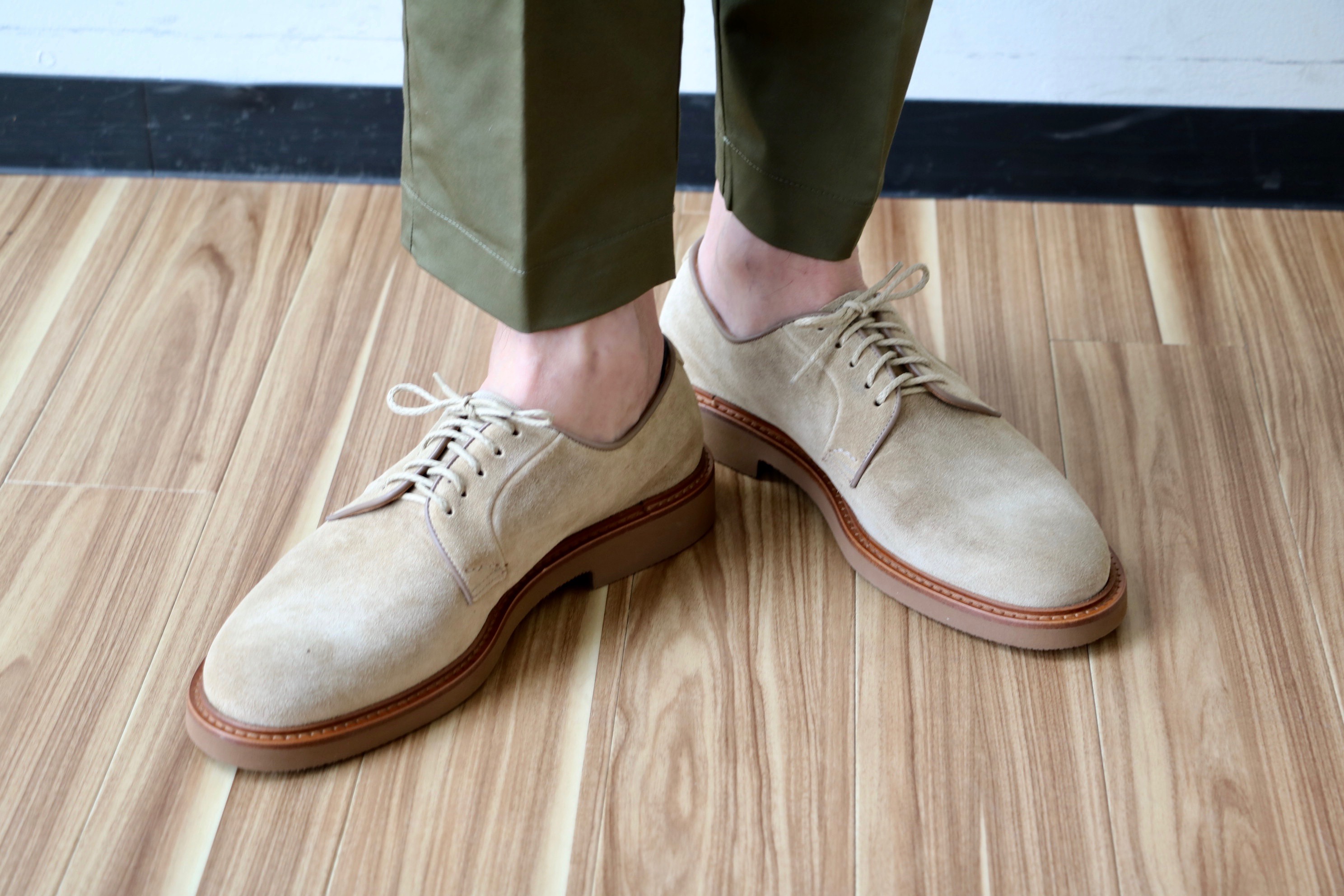 スェードに洗いをかけたカジュアルなプレーントウは、カラー「SABBIA」。サイズ40。本体価格は、49.000円です。
