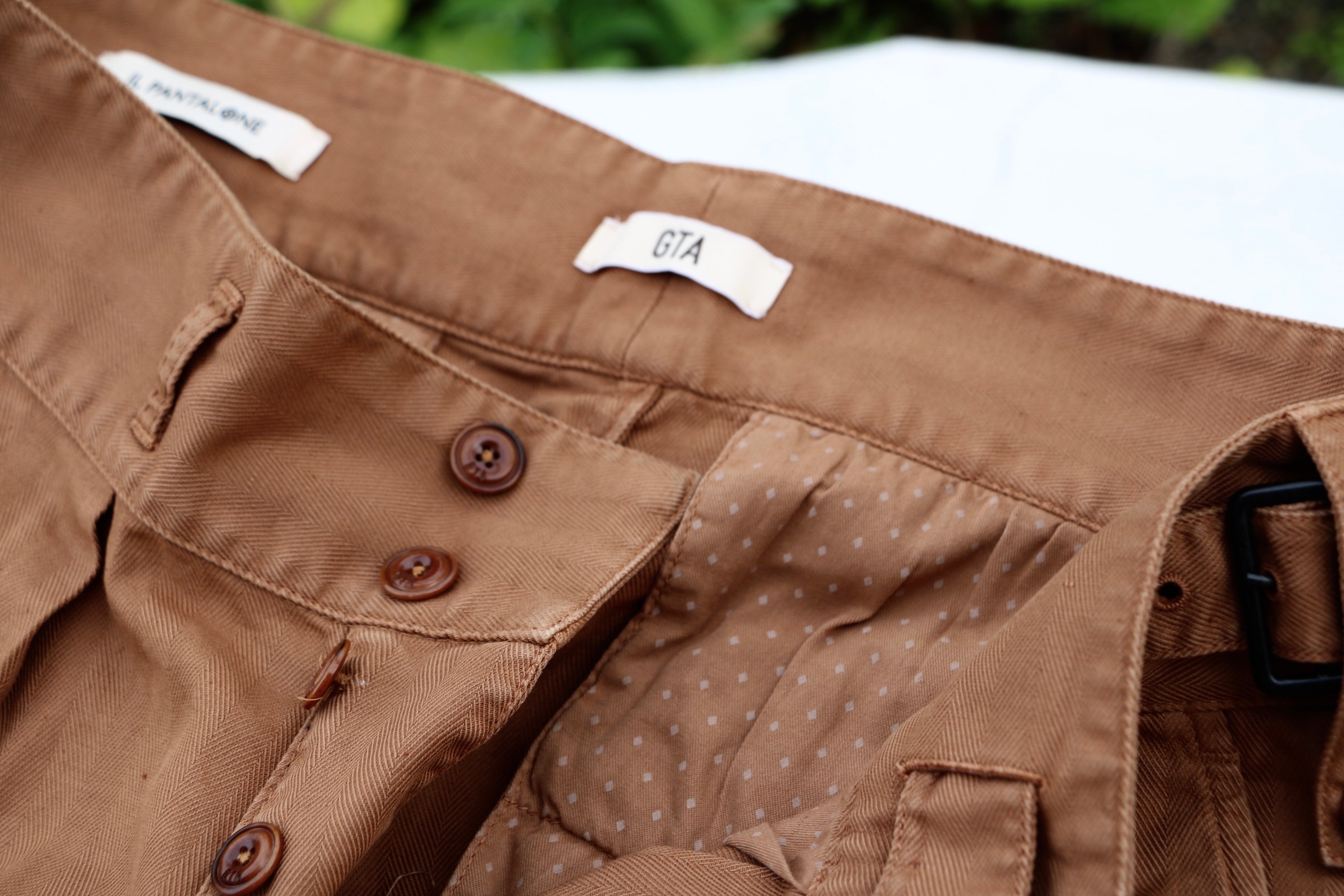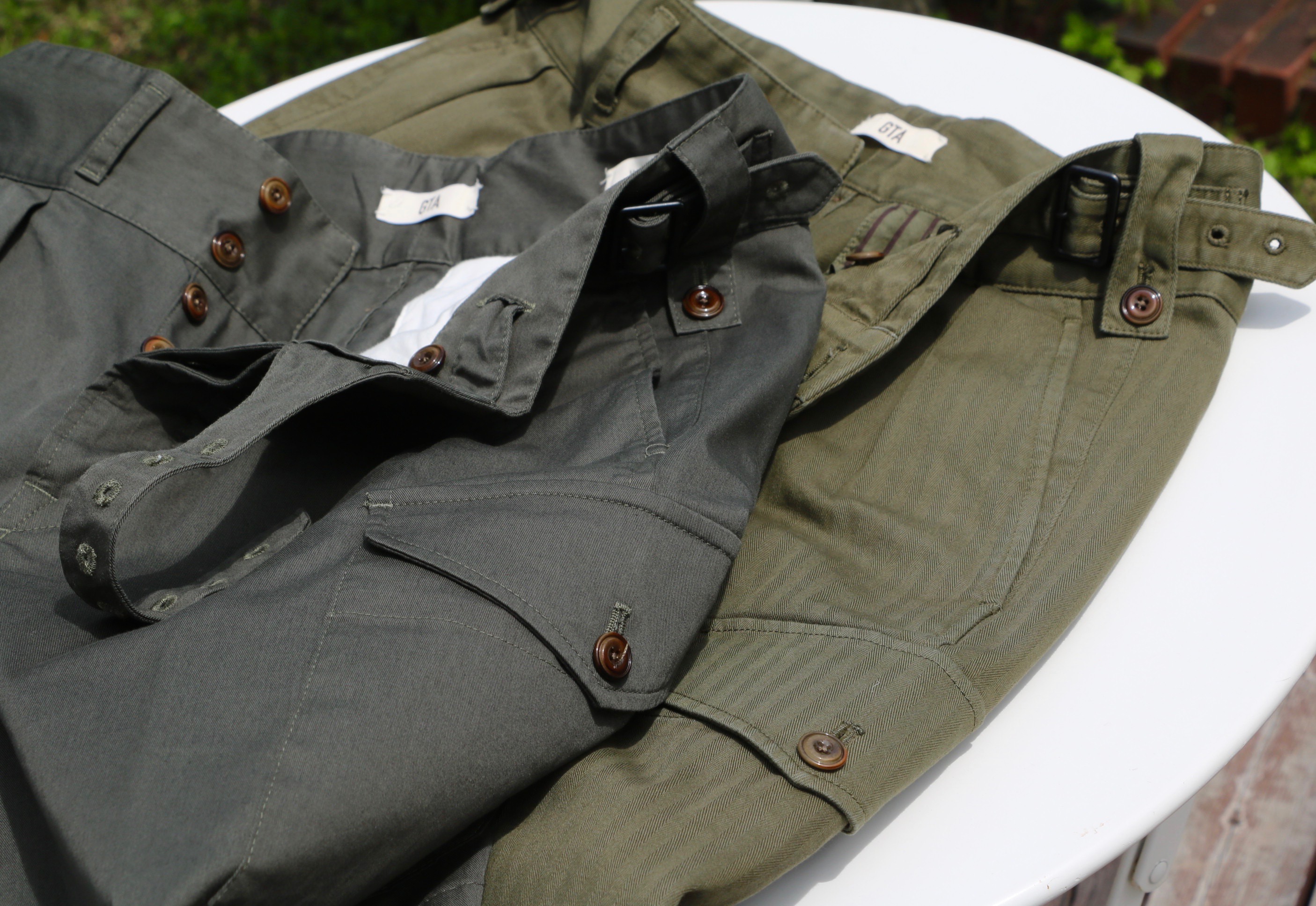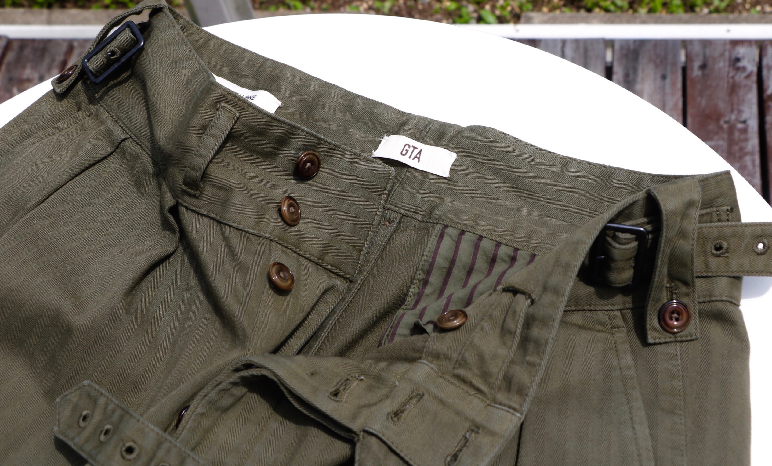 本日は、マスヤマが定例の休み。タカイはゴールデンウィークの振替連休です。そうなると、売り場はナグラさんと二人だけ。かつての名コンビだけに、こういう日は忙しい。案の定、いつも以上にお客様のご来店が多く、ブログ作りは後回しになりました。日が長くなったおかげです。本日の出で立ちのままですが、かろうじてカメラに収めることができた写真が、こちら。入荷したばかりの【GTA/ジーティーアー】のグルカショーツ。5月13日のブログでご案内させていただいたコットン・リネンストレッチ グルカショーツの色違いです。
