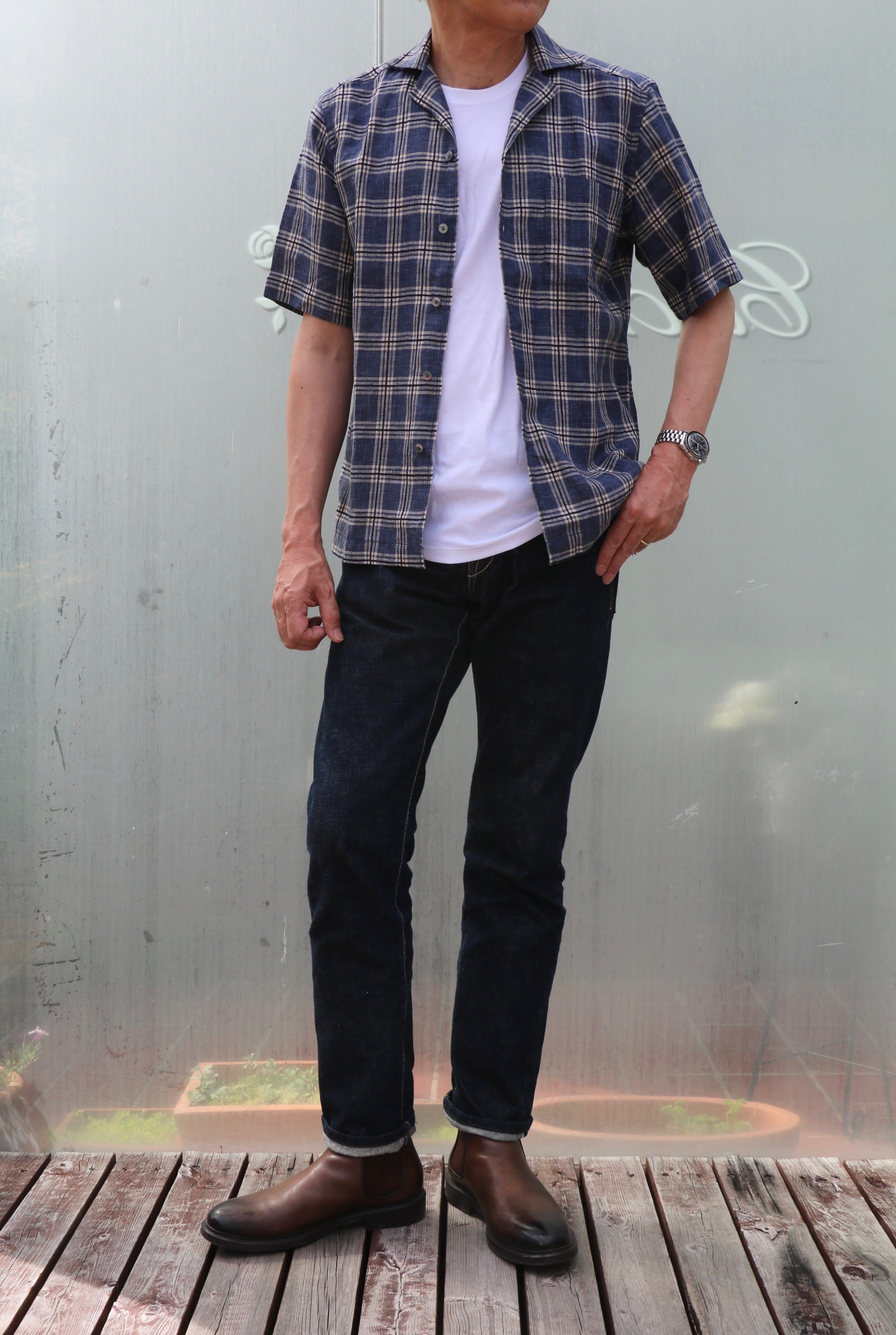 リネンにほんの少しだけコットンを混ぜた爽やかなチェック柄は、インディゴベースの寒色でまとめ上げた涼しげなシャツに仕上がりました。