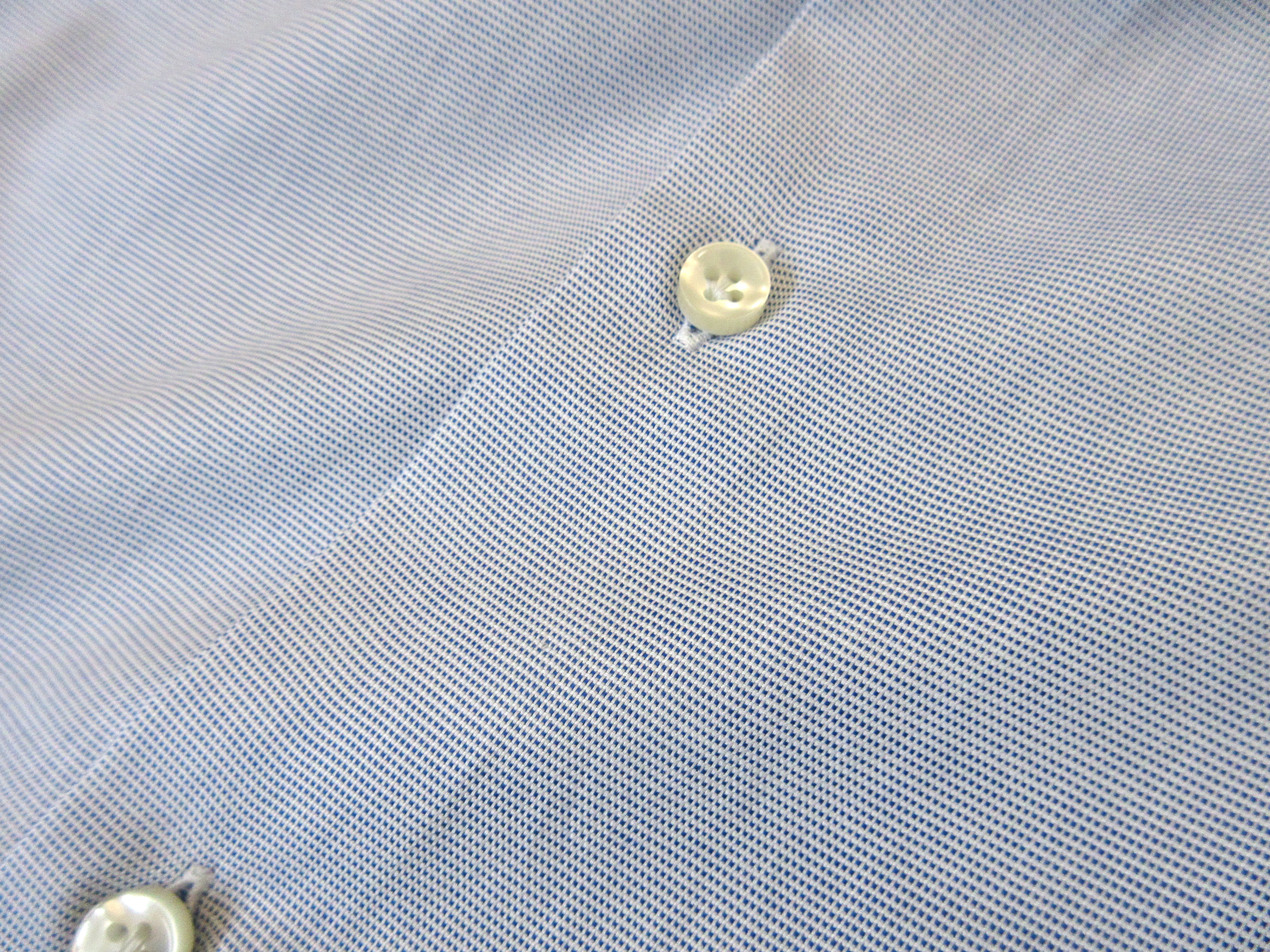 無地に見えるブルーとネイビーのシャツは、よーく見るとマイクロチェック柄が施されています。遠くから見れば無地ですが、やはり無地とは一線を画す。ちょっとの違いですが、表情の違いに大きな差がでています。