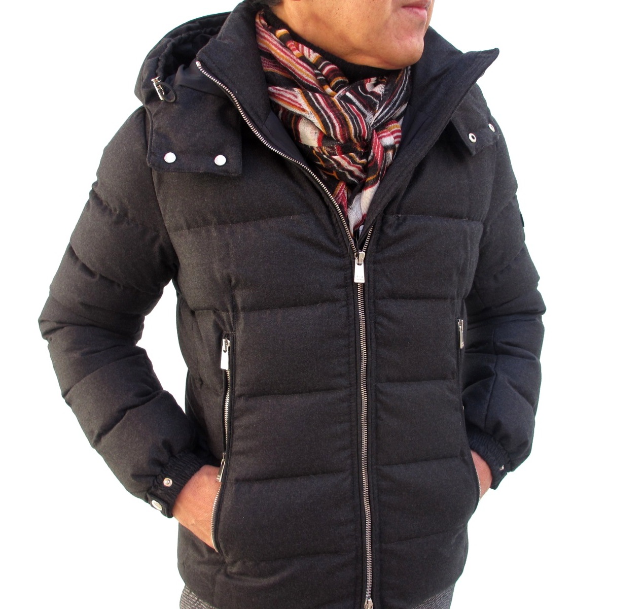 MODEL:「DOMIZIANO」 ウール・シルク フード取り外し付きダウンジャケット