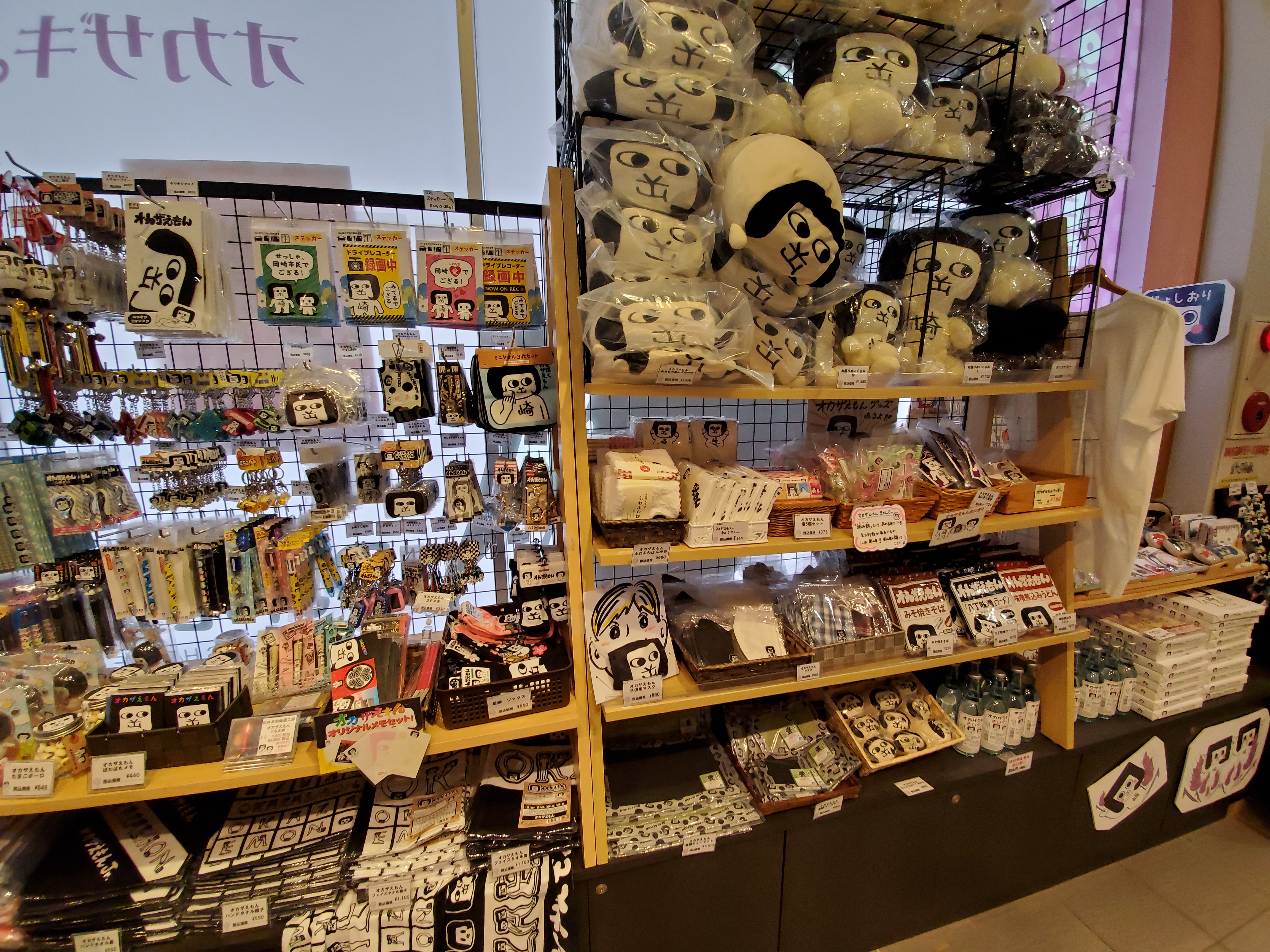 岡崎といえば、オカザえもん。ご当地キャラクターのグッズが、所狭しと積んでありました。